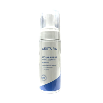 Description: AESTURA ATOBARRIER 365 Bubble Cleanser is a mildly acidic foaming cleanser, designed for moisturizing and gently cleansing dry and weakened skin. It can be used to remove impurities, excess oil, and makeup, without stripping the skin of its natural moisture, making it suitable for sensitive skin. It uses gentle, plant-derived surfactants to cleanse the skin effectively, while supporting and strengthening the skin's natural barrier. It has also been enriched with Green Tea Water and Vitamin E, it helps to soothe and nourish the skin while enhancing its resilience against environmental stressors.