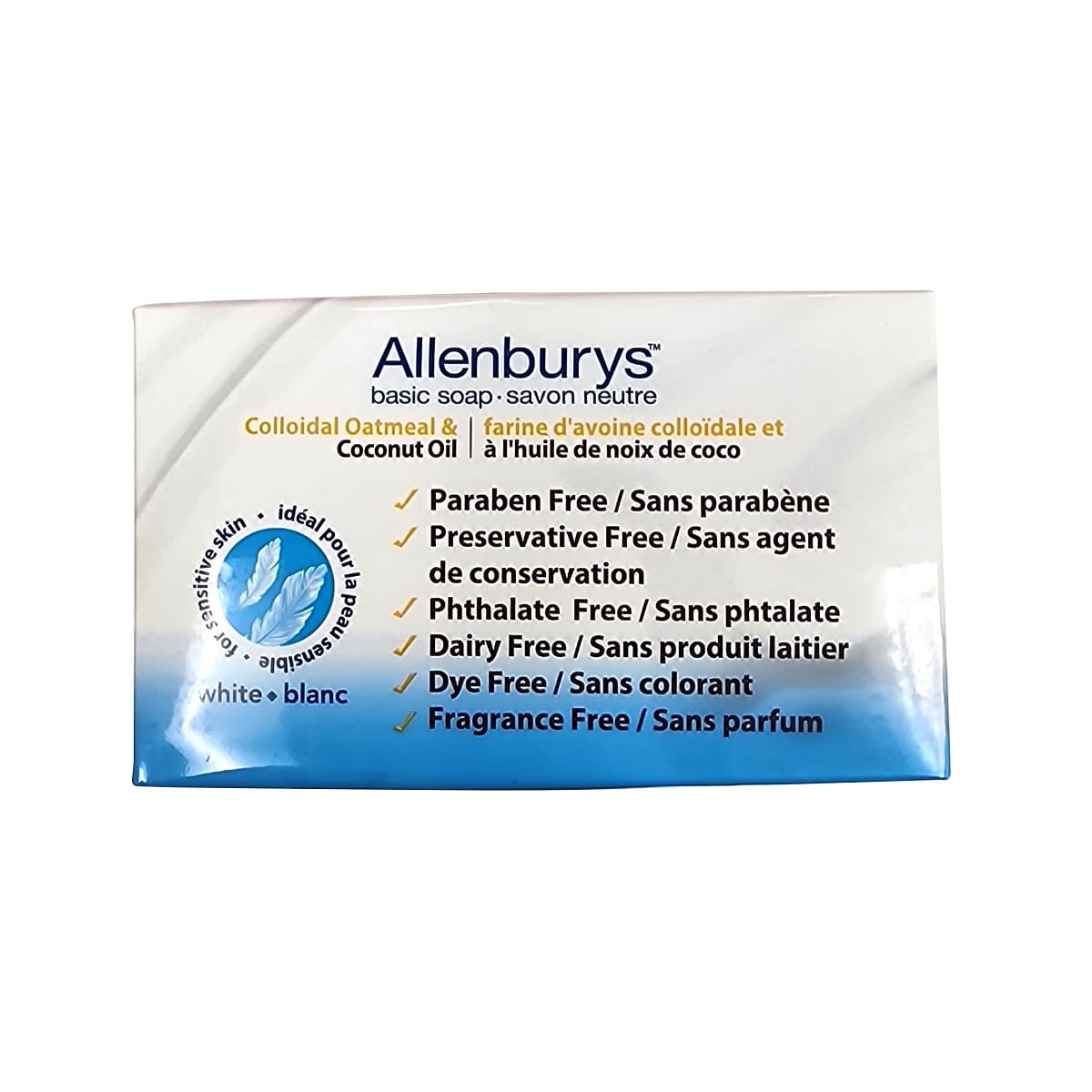 Description: Allenburys Colloidal Oatmeal and Coconut Oil Soap for Sensitive Skin is ideal for sensitive skin. This formula is designed to soothe and moisturize sensitive skin. It is free of parabens, gluten, dairy, and dyes, making it safe for every member of the family, including babies.