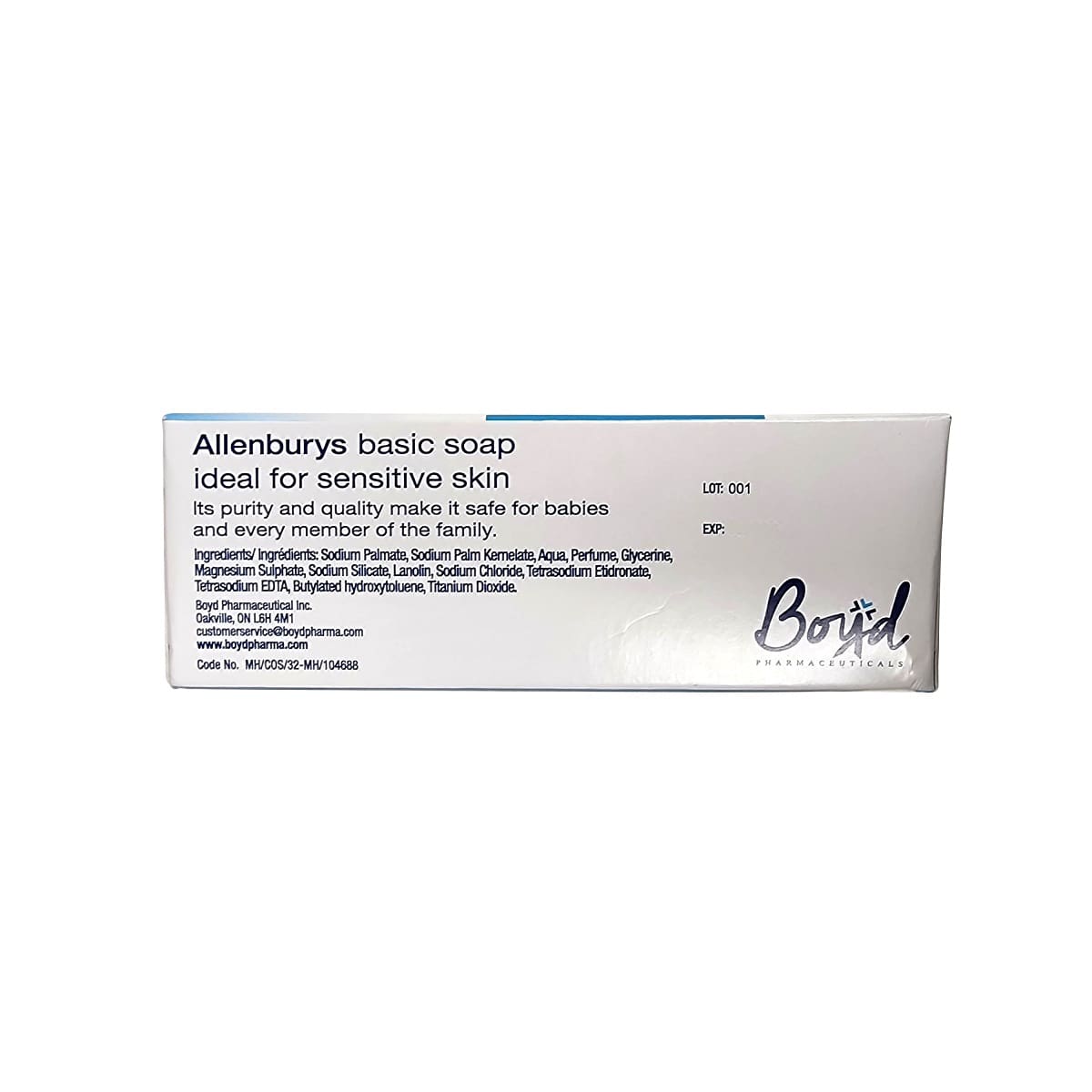 Description: Allenburys Original Soap for Sensitive Skin is ideal for sensitive skin. This basic soap contains just 12 ingredients to deliver therapeutic skin care. It is free of parabens, gluten, dairy, and dyes, making it safe for every member of the family, including babies.