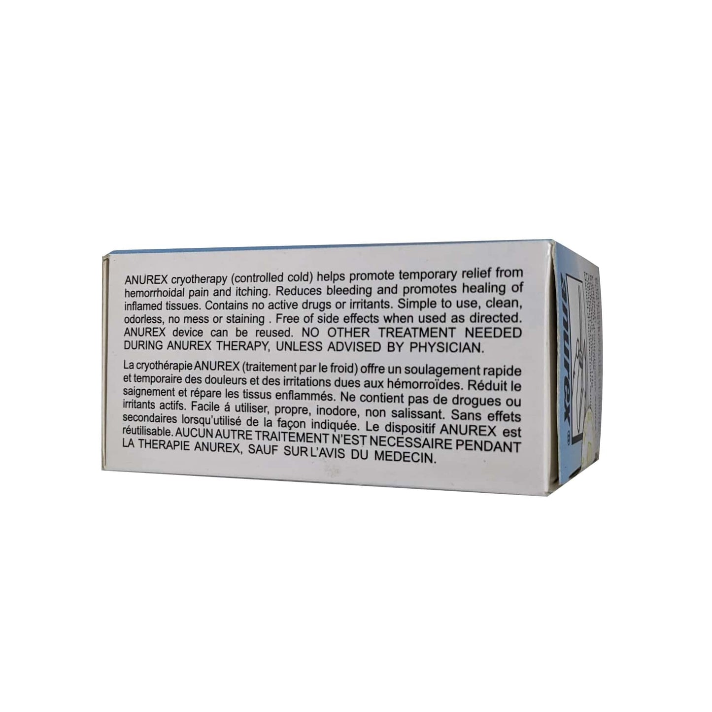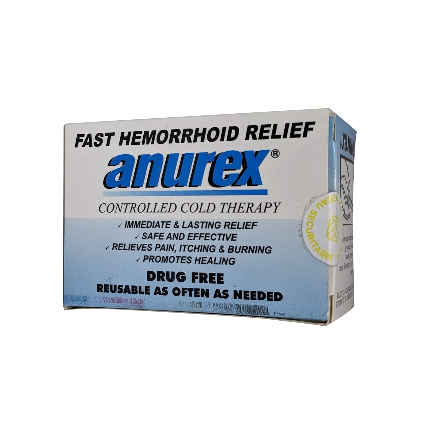 Description: Anurex uses controlled cold therapy, or cryotherapy, to help temporarily relieve hemorrhoidal pain and itching. It is easy to use, drug free, and provides immediate soothing relief. This therapy kit has also been clinically proven for efficacy and safety.