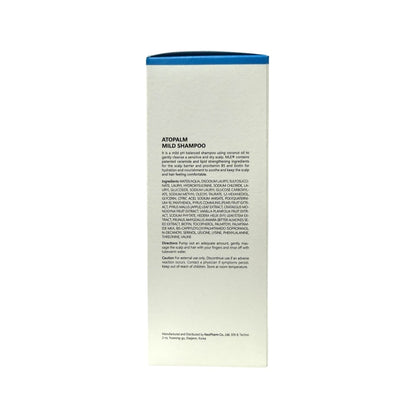 Description: Atopalm Mild Shampoo is crafted to cater to the needs of dry, damaged hair and sensitive scalps, offering a gentle yet effective cleansing solution. The shampoo features Atopalm's patented MLE technology, Biotin, and Pro-Vitamin B-5 enhances hair strength and hydration. It also includes panthenol to ensure the scalp remains soothed throughout. The unique formula also leaves a protective coating to help maintain moisture and safeguard against environmental stresses.