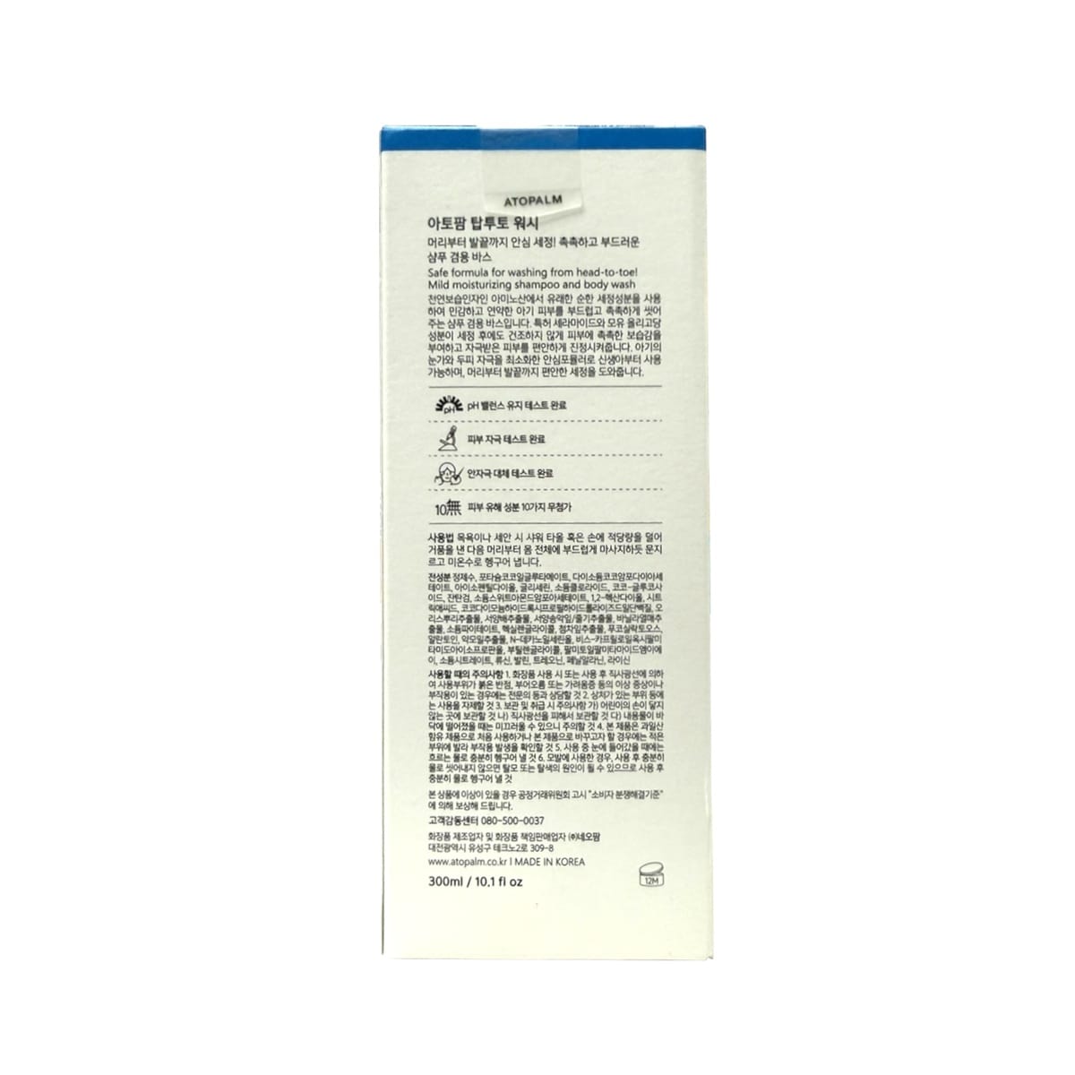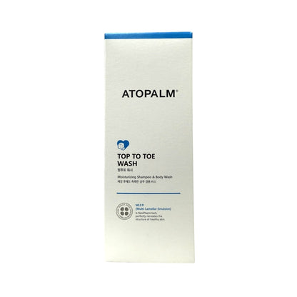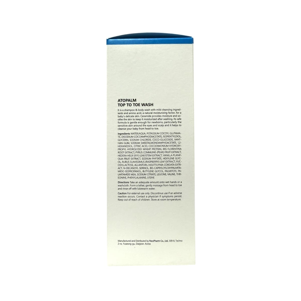 Description: Atopalm Top to Toe Wash is formulated with a harmonious blend of nurturing ingredients, tailored to rejuvenate both your skin and hair. It is infused with Ceramide-9s to fortify the skin's natural barrier and incorporates Fucosyllactose (patented human milk oligosaccharides) for hydration, ensuring your skin and hair feel soft and revitalized. It contains a blend of sweet almond oil and vegetable seed oils, including Grape, Safflower, Sunflower, Jojoba, and Green Tea, to moisturize and soothe the skin. Its mild composition makes it suitable for all ages, from infants to adults, ensuring gentle care for even the most delicate skin.