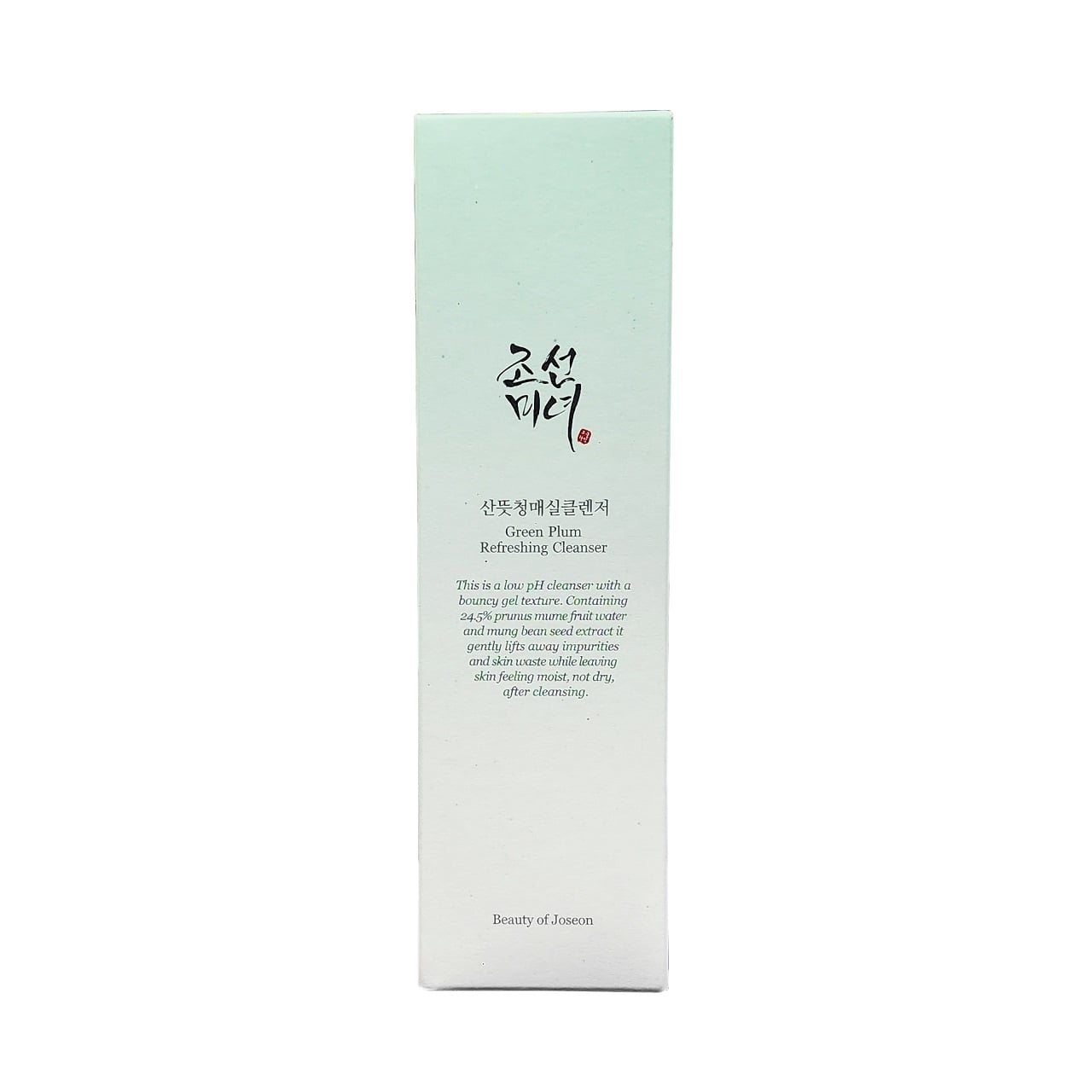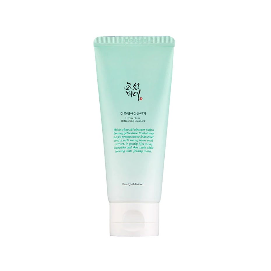 Description: Beauty of Joseon Green Plum Refreshing Cleanser is a low pH gel cleanser that helps to cleanse the face without damaging the natural skin barrier. It features natural 'Hanbang' ingredients, such as plum and mung bean, which help to soften, moisturize, and gently exfoliate the skin, leaving a refreshed and moisturized feel after cleansing.
