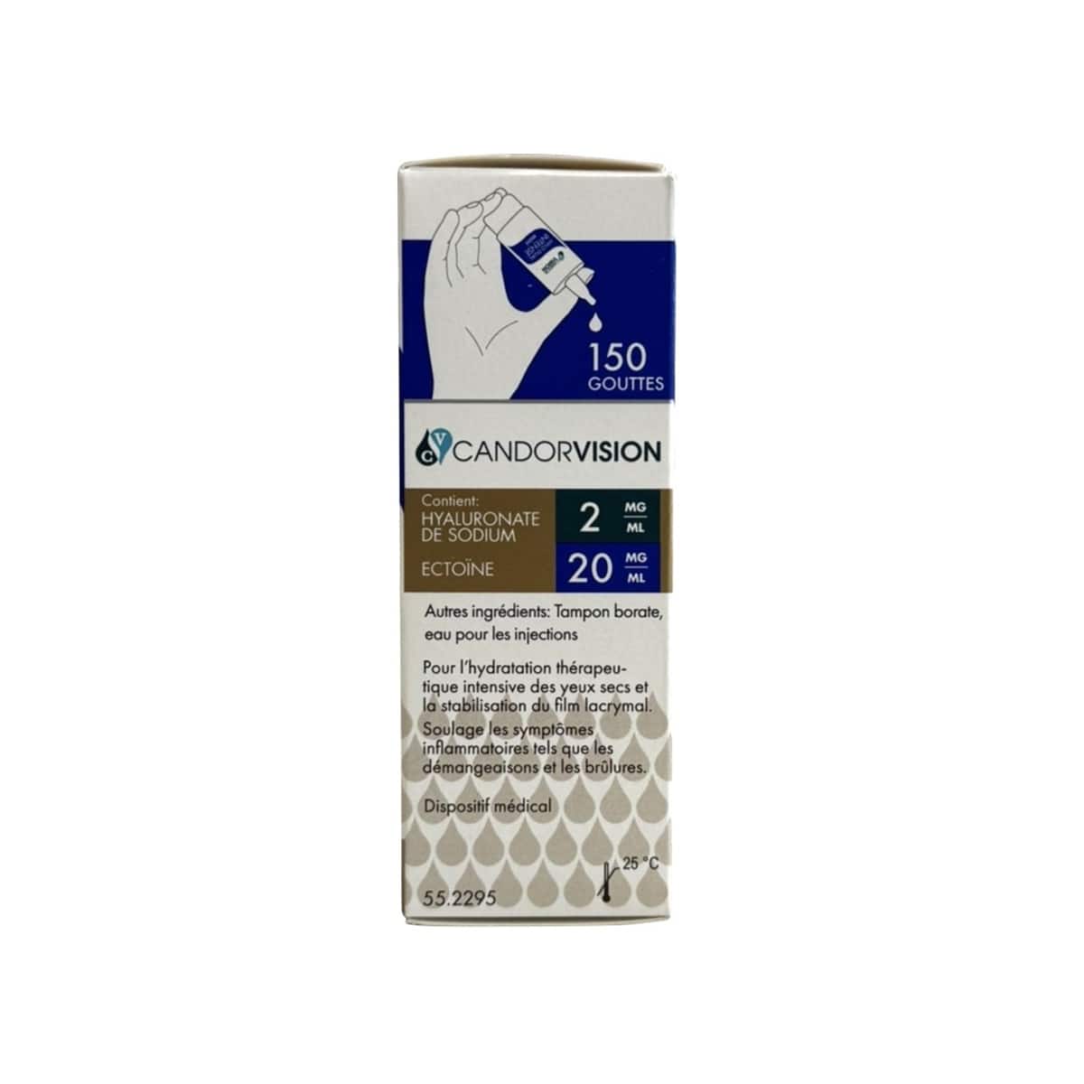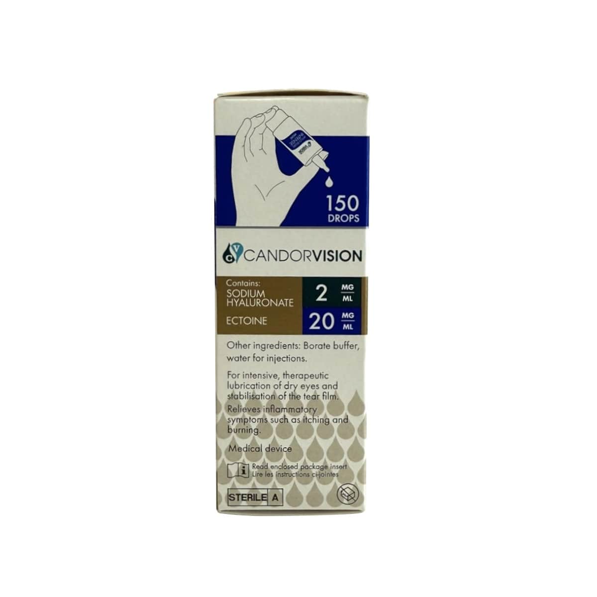 Description: CandorVision Hylo-Dual Intense Lubricating Eye Drops are designed to provide strong intensive dry eye relief. These eye drops contain a high concentration of high molecular weight Sodium Hyaluronate, which makes it exceptionally viscous and provides the ocular surface with intensive, soothing and long-lasting moisturization, and ectoine, which stabilizes the tear film and protects tears from excessive evaporation for extended dry eye relief. These eye drops are preservative free and phosphate free and were developed for patients with more severe, chronic and persistent dry eye symptoms and for those who suffer from prolonged discomfort due to inflammatory symptoms. Do not use with contact lenses.