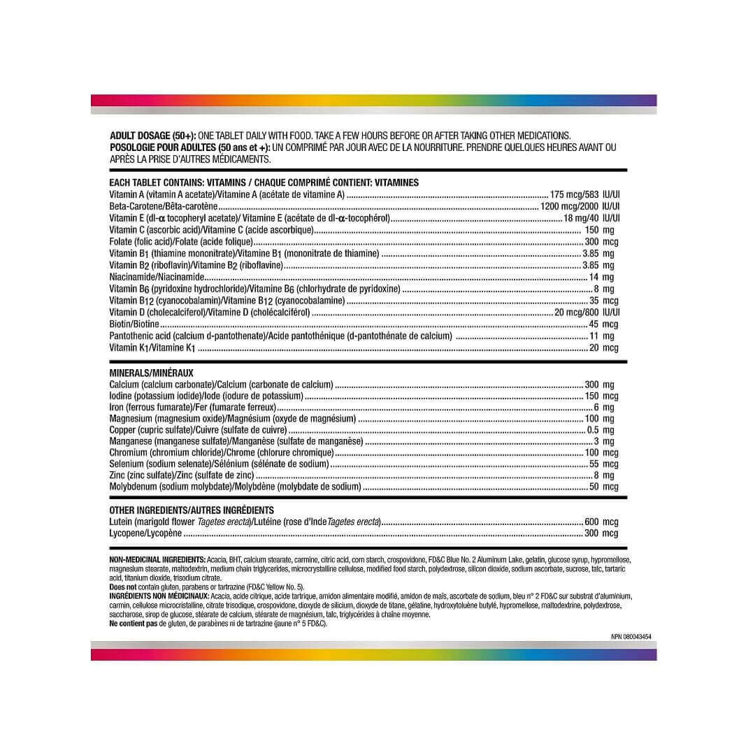 Description: Centrum Women 50+ is formulated to address the nutritional needs of Women age 50+. It contains more Lutein, Calcium, and Vitamin D, compared to Centrum Select Essentials 50+, which is designed for all consumers age 50+. This formula for women age 50+ is intended to help maintain bone and teeth, help maintain proper eyesight and healthy skin, and help support the immune system.