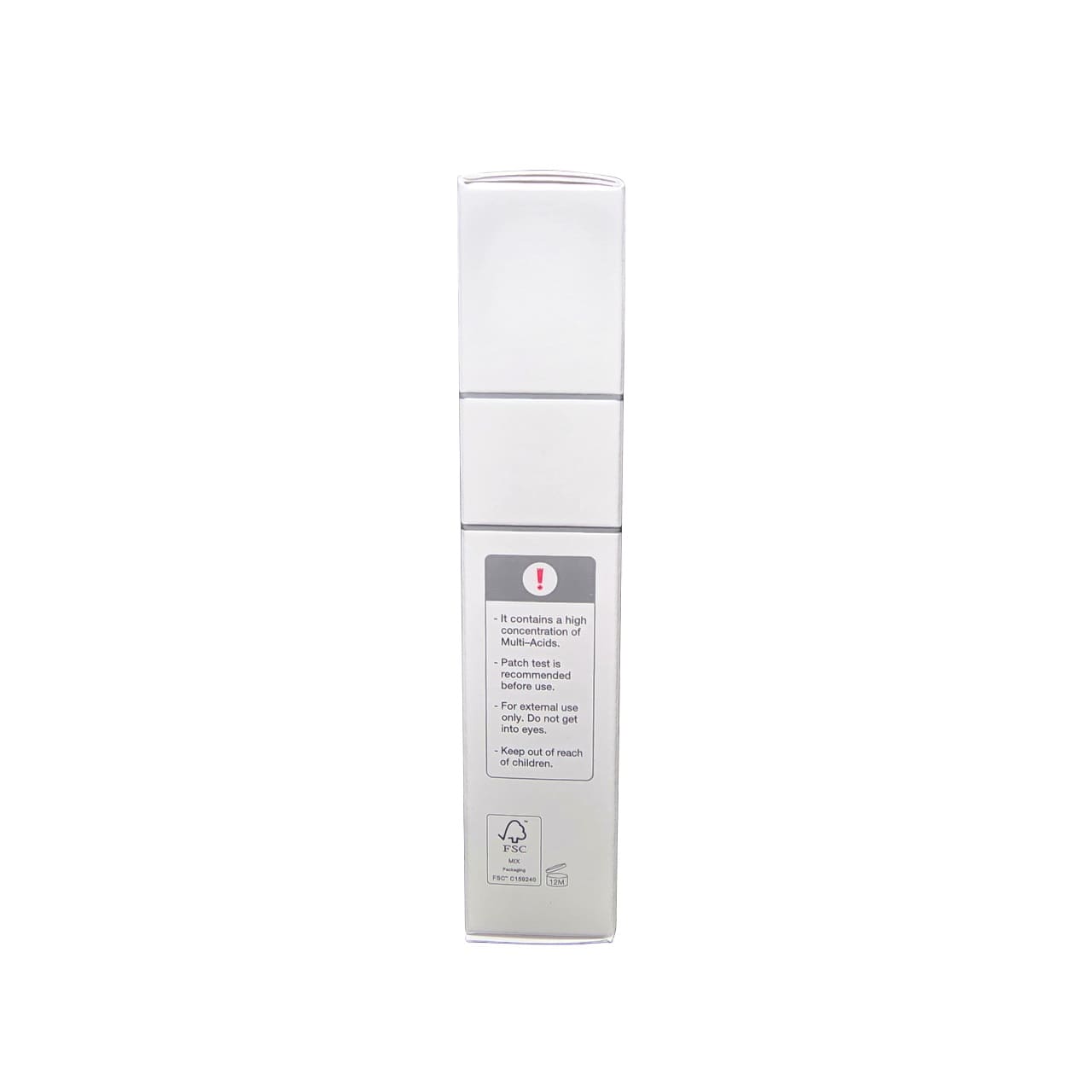 Ingredients: Water, Glycolic Acid, Lactic Acid, Potassium Hydroxide, Gluconolactone, Mandelic Acid, Dipropylene Glycol, Panthenol, Salicylic Acid (2%), Methylpropanediol, 1,2-Hexanediol, Octyldodeceth-16, Citric Acid, Hydroxyethylcellulose, Pentylene Glycol, Sodium Polyacryloyldimethyl Taurate, Cyanocobalamin, Polyacrylate Crosspolymer-6, Hydroxypropyl Starch Phosphate, Ethylhexylglycerin, Capryloyl Salicylic Acid, Polysorbate 60, Disodium Phosphate, Sodium Phosphate, Tocopherol, Allantoin, Hydrolyzed Hyaluronic Acid.