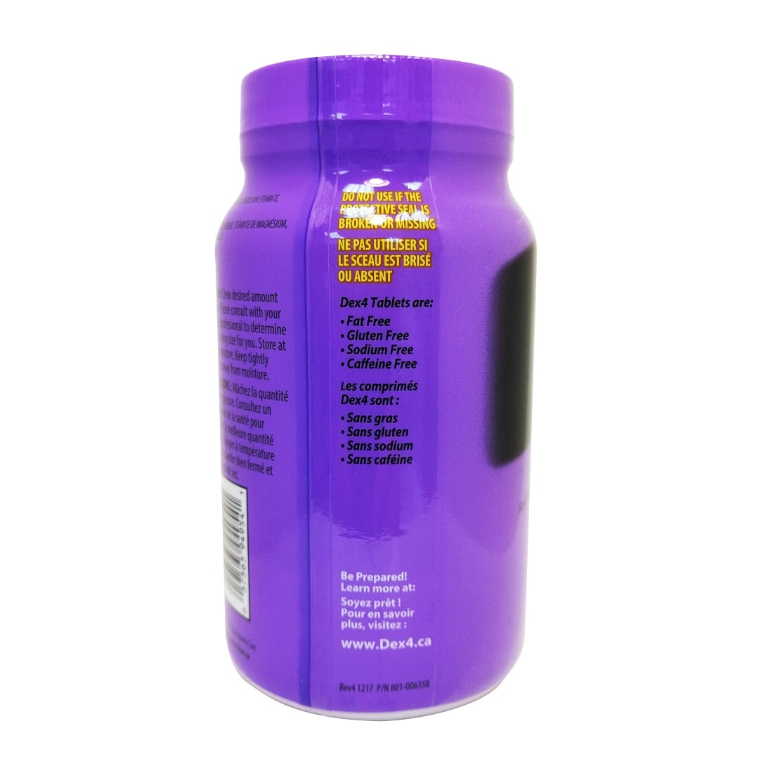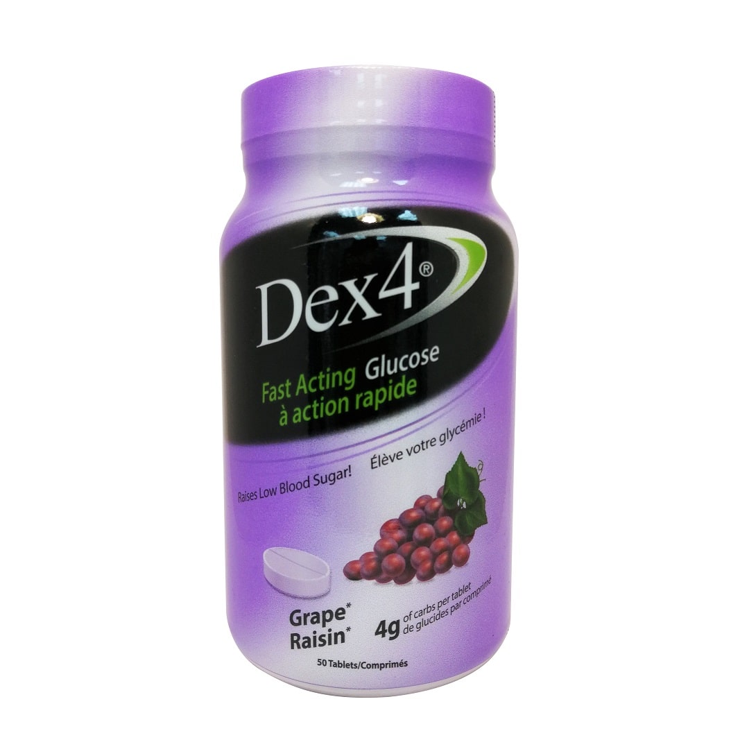 Description: Dex4 Fast Acting Glucose tablets are designed to help raise your blood sugar quickly, which is ideal in mild episodes of hypoglycemia. These glucose tablets come in grape flavour and each tablet contains 4 grams of fast-acting carbohydrates.