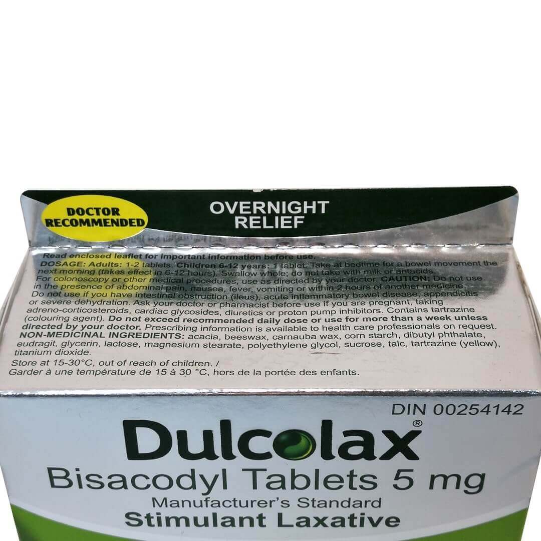 Description: Dulcolax Bisacodyl 5mg Laxative Tablets provides overnight relief of occasional constipation, by stimulating the bowel muscles, while also accumulating water in the intestines.