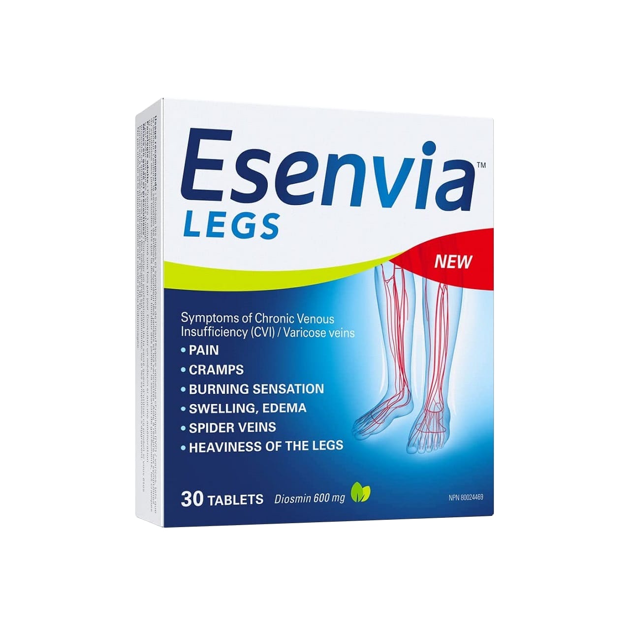Description: Esenvia Legs is an over-the-counter product that is designed to relieve the symptoms of chronic venous insufficiency, including varicose veins, pain, swelling, burning sensation, heaviness of the legs, and spider veins. Esenvia also helps to reduce the symptoms of heavy leg syndrome, such as pain, leg heaviness, and the sensation of swelling, cramps, and edema.