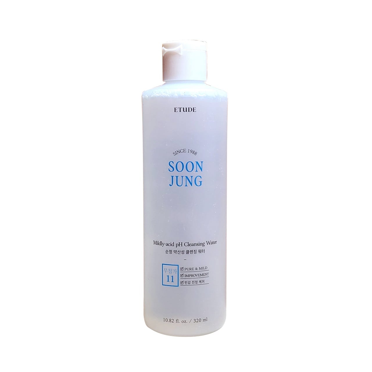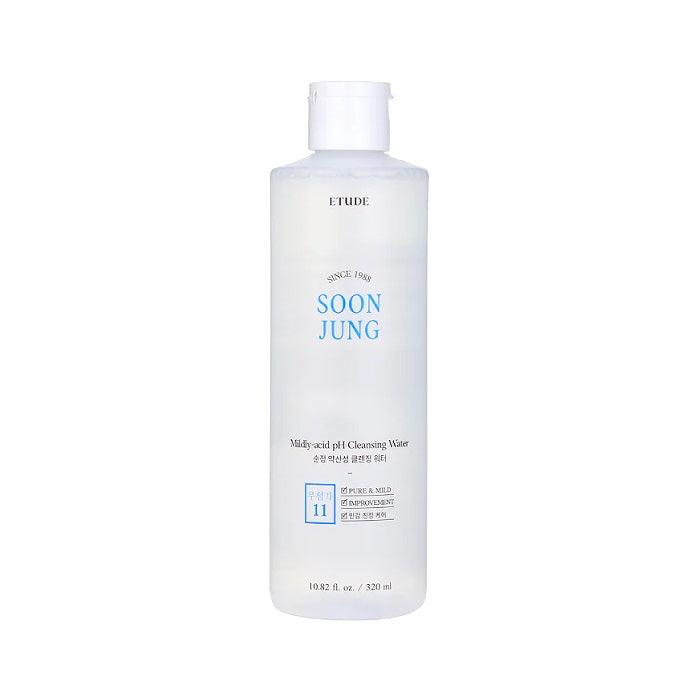 Description: Etude House Soonjung 5.5 Cleansing Water is a low-pH, hypoallergenic cleansing water designed to remove makeup and sebum while soothing and moisturizing the skin. Formulated as a no-wash cleanser.