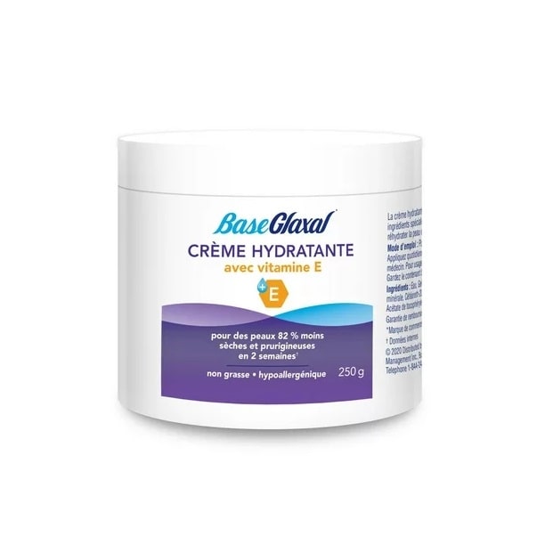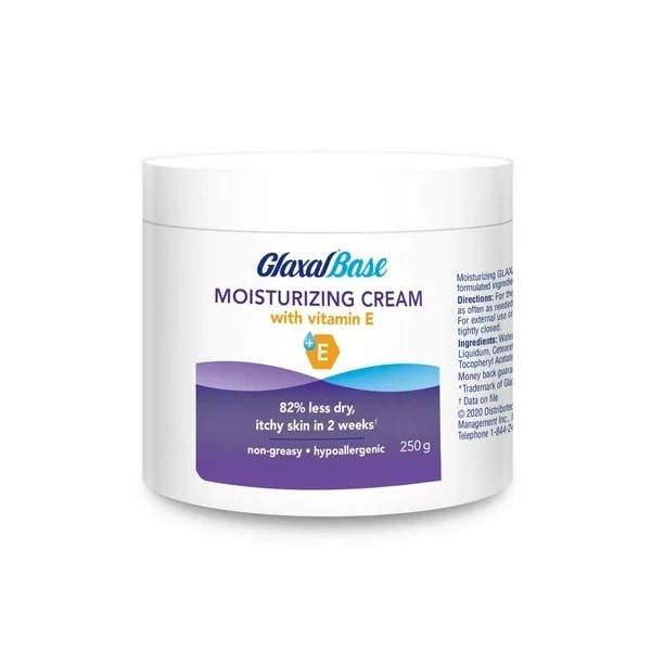 Description: Glaxal Base Moisturizing Cream with Vitamin E uses the specially formulated ingredients of a base cream to rehydrate extremely dry skin. This cream helps restore lost moisture to the skin and replenishes and protects the skin's moisture barrier, plus, the antioxidant properties of vitamin E helps to improve the look of damaged skin. This cream is hypoallergenic, fragrance-free, lanolin-free, and non-greasy.