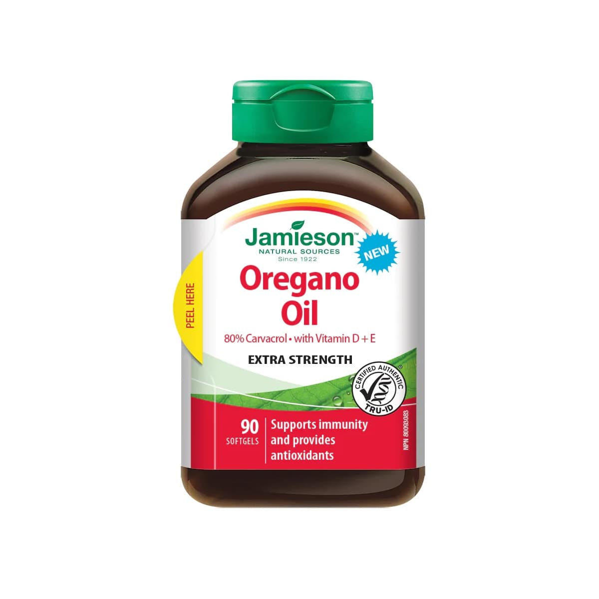 Description: Jamieson Oregano Oil with Vitamin D and E provides extra strength oregano oil coupled with the powerful antioxidant vitamin E and the benefit of vitamin D to support immunity. Distilled from the leaves of the oregano plant, oregano oil helps fight unwanted bacteria to support a healthy immune system.