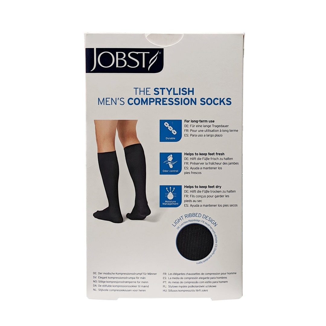 Description: Compression socks play an important part in preventing or treating venous diseases. Jobst has integrated high-tech compression technology into their compression socks for men. With stylish, modern designs and colours, Jobst compression socks for men blend perfectly into men's everyday wardrobes.
