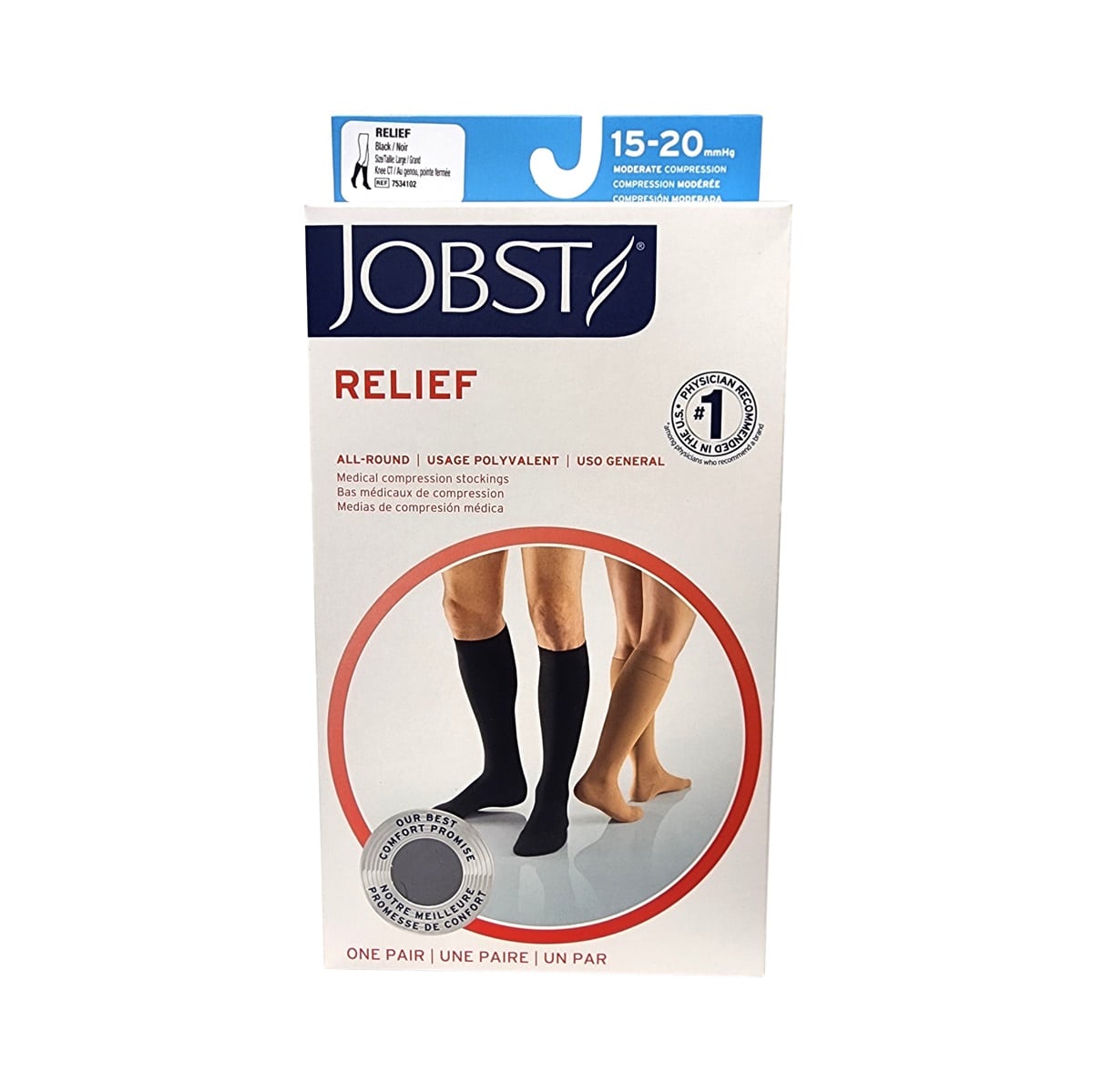 Jobst Relief Compression Stockings 15-20 mmHg - Knee High / Closed Toe / Black (Large)