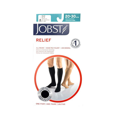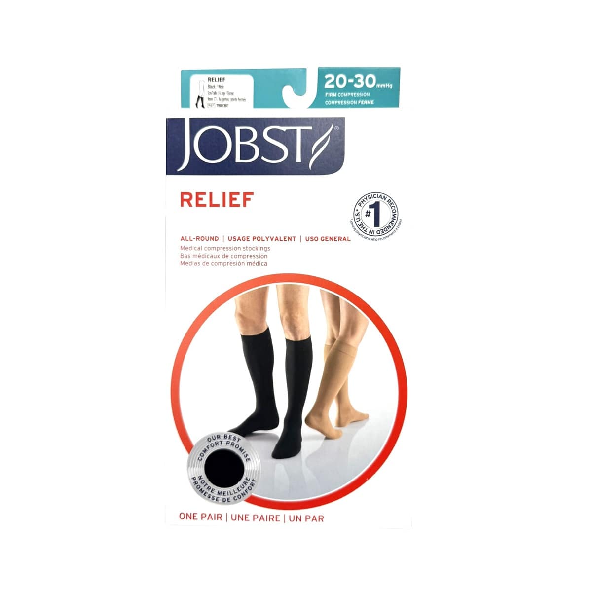 Description: Compression stockings play an important part in preventing or treating venous diseases. Jobst has integrated high-tech compression technology into their Relief line of compression stockings. Jobst Relief compression stockings are suitable for men or women and come in different colours.