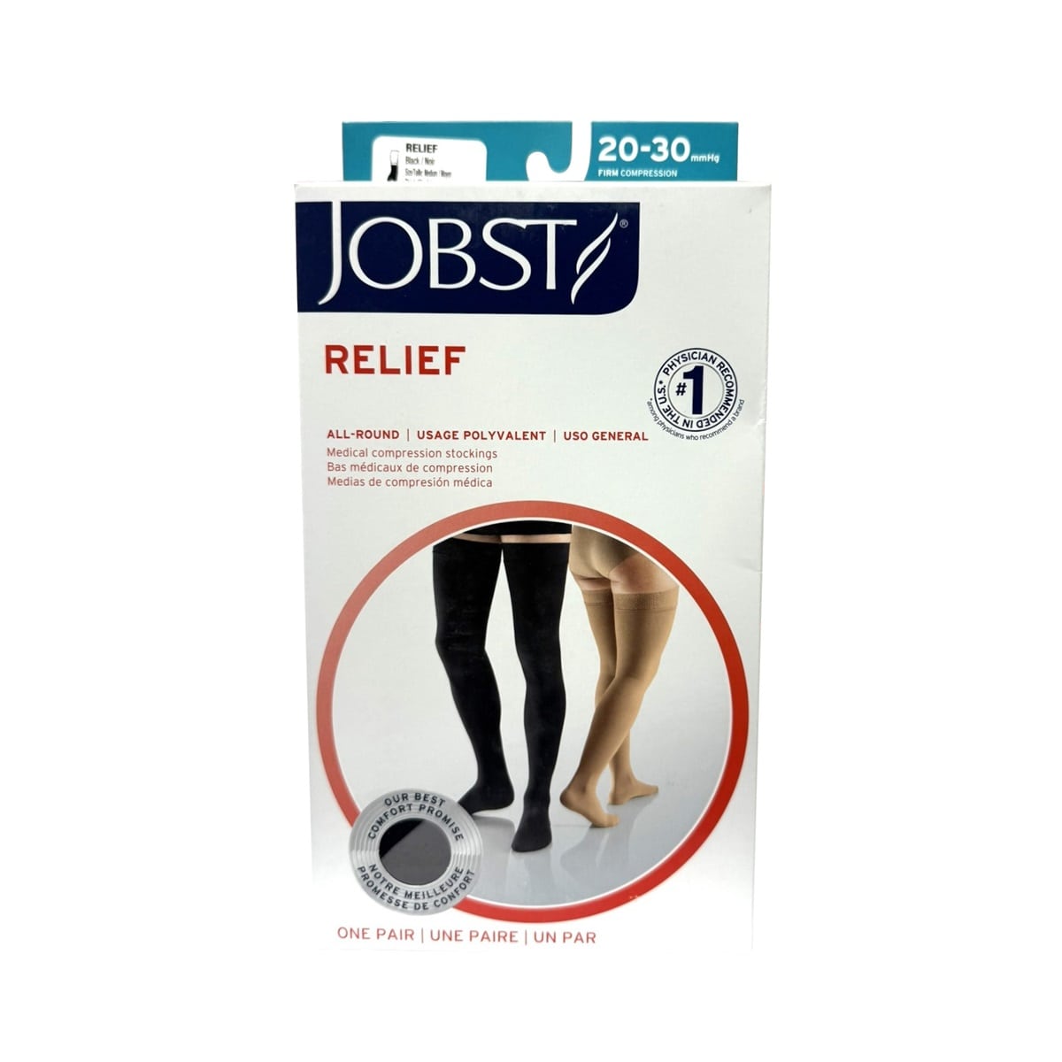 Description: Compression stockings play an important part in preventing or treating venous diseases. Jobst has integrated high-tech compression technology into their Relief line of compression stockings. Jobst Relief compression stockings are suitable for men or women and come in different colours.
