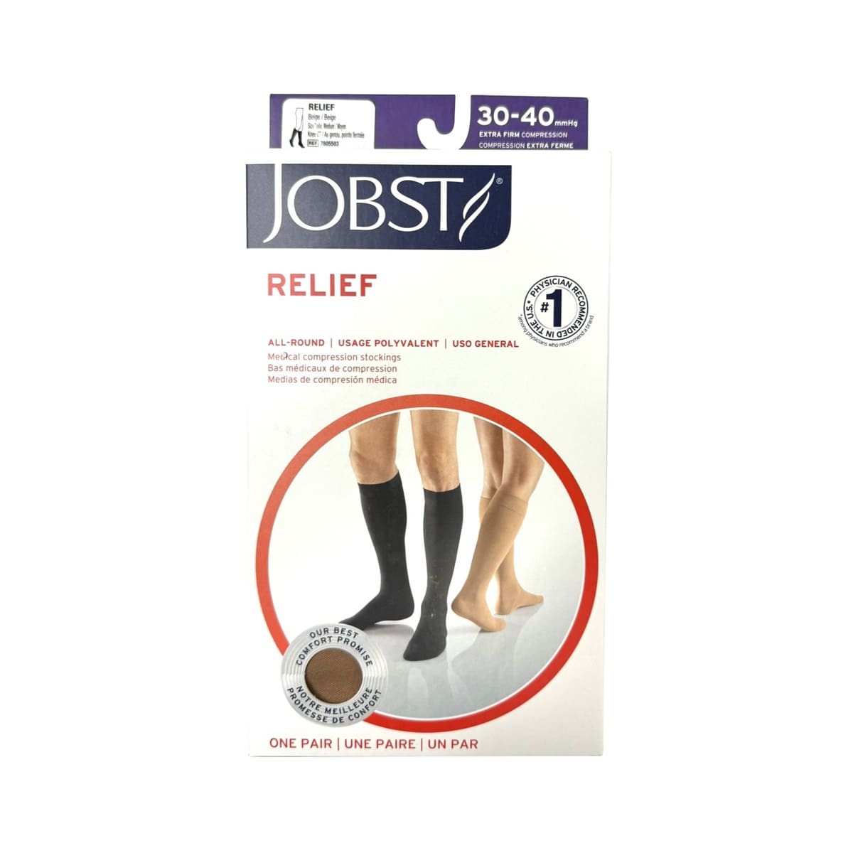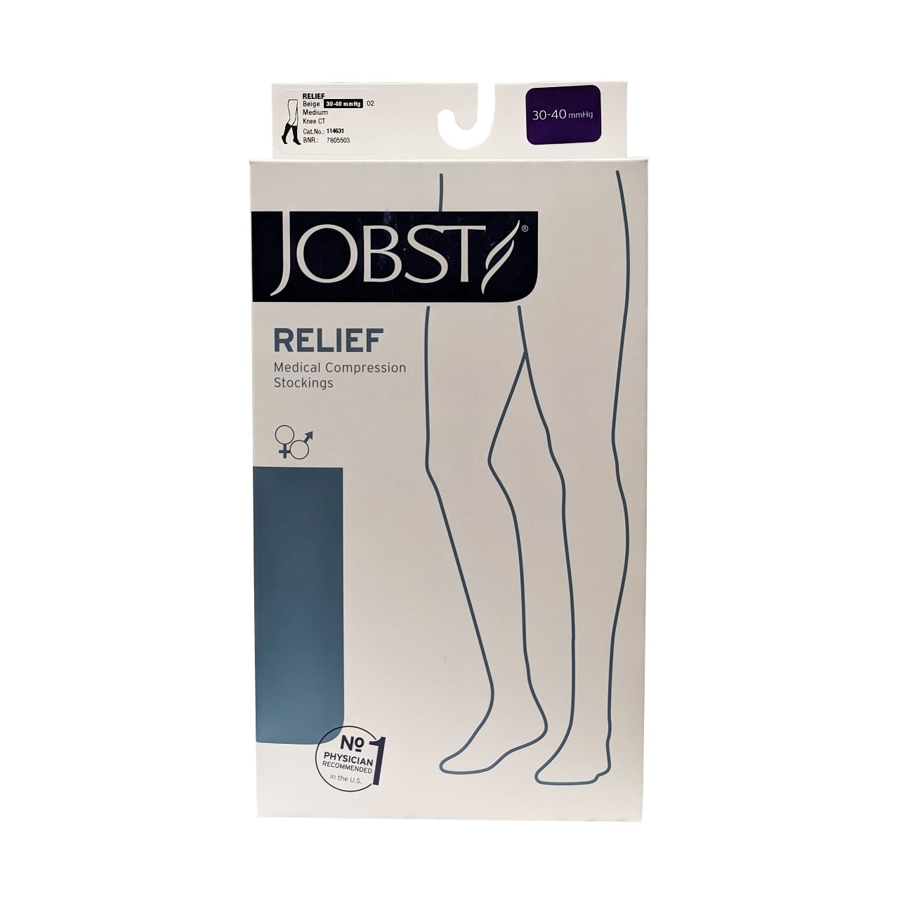 Description: Compression stockings play an important part in preventing or treating venous diseases. Jobst has integrated high-tech compression technology into their Relief line of compression stockings. Jobst Relief compression stockings are suitable for men or women and come in different colours.