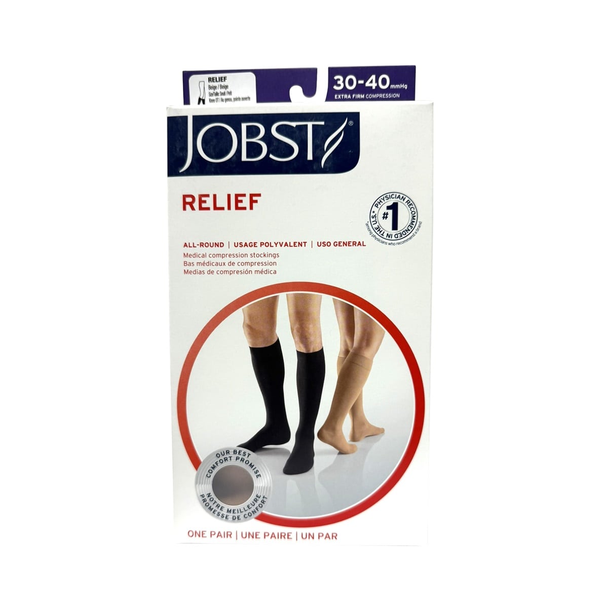 Description: Compression stockings play an important part in preventing or treating venous diseases. Jobst has integrated high-tech compression technology into their Relief line of compression stockings. Jobst Relief compression stockings are suitable for men or women and come in different colours.