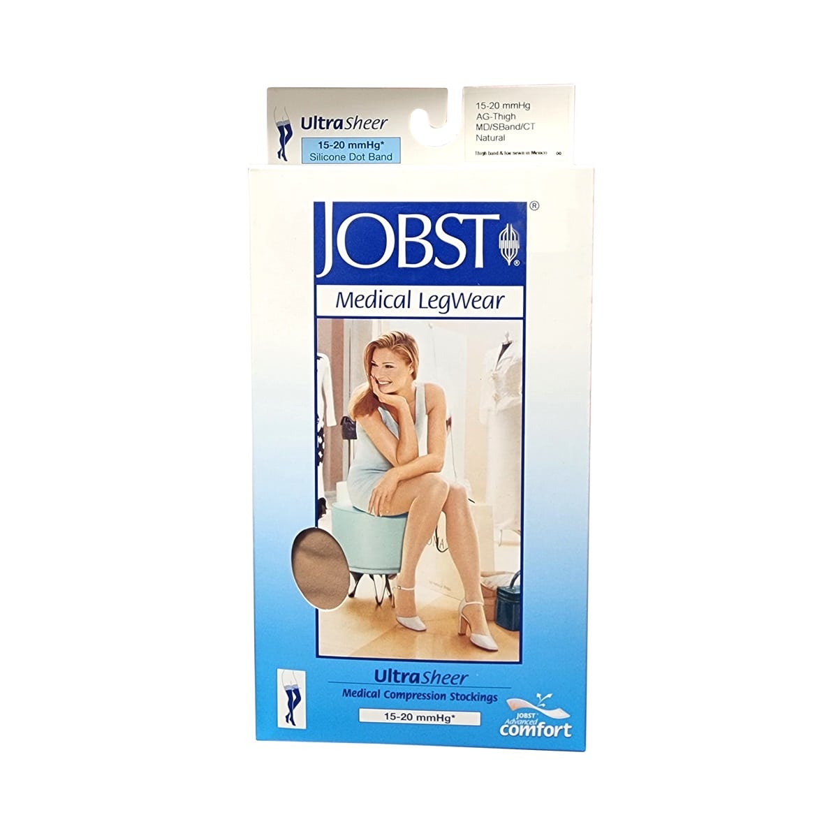Jobst UltraSheer Compression Stockings 15-20 mmHg - Thigh High / Silicone Dot Band / Closed Toe / Natural (Medium)