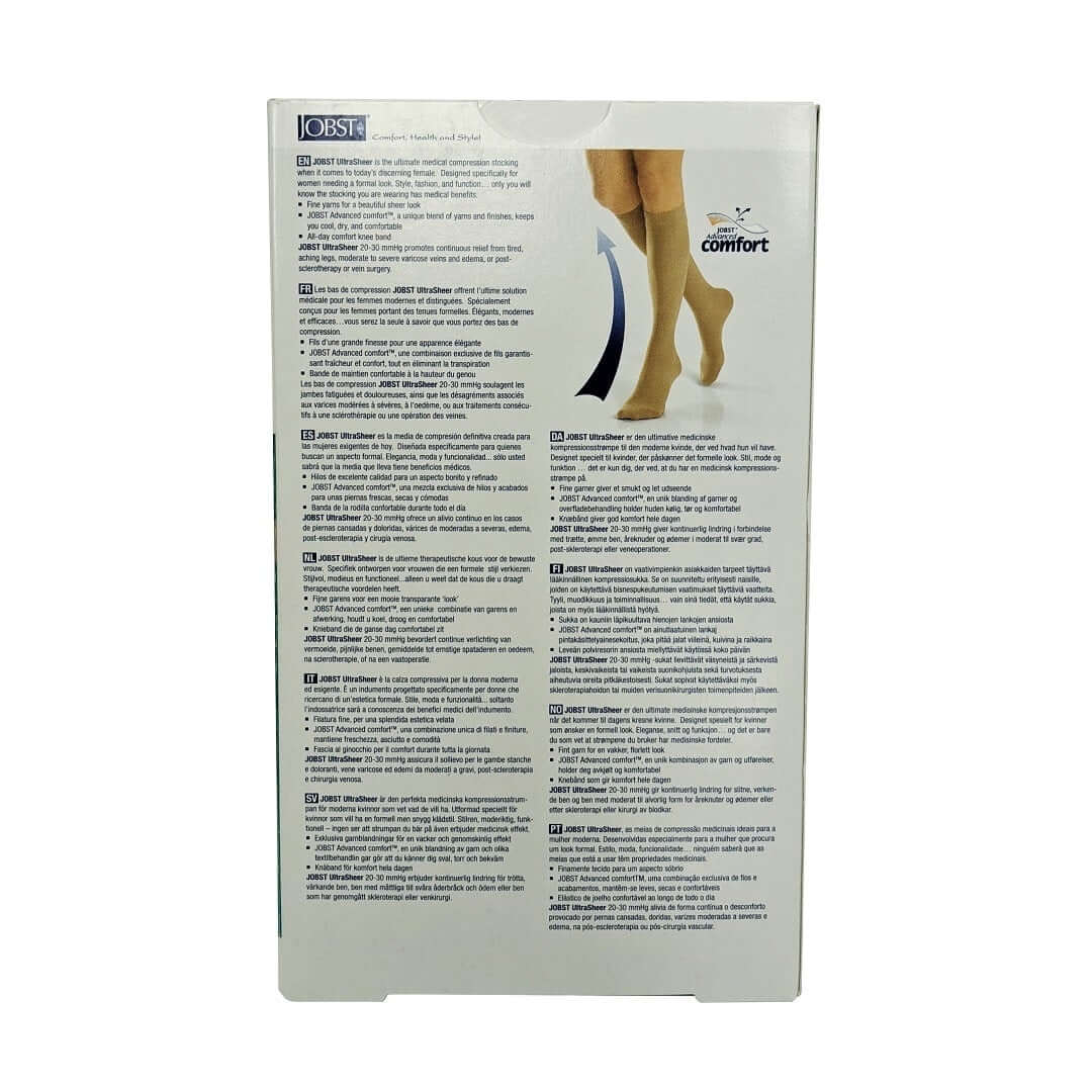 Description: Compression stockings play an important part in preventing or treating venous diseases. Jobst has integrated their revolutionary high-tech compression technology into their Ultrasheer line of compression stockings for women. With a stylish, modern design, Jobst Ultrasheer stockings fit fashionably into your wardrobe.