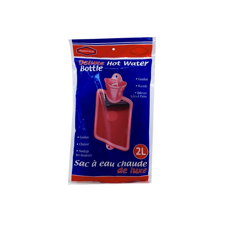 Description: Mansfield Deluxe Hot Water Bottle is recommended for comfort, warmth, and to help relieve aches and pain. It can help increase the flexibility of soft tissues, including muscles and connective tissues, and can also be used for relief of menstrual pain. This water bottle has 2L of capacity.