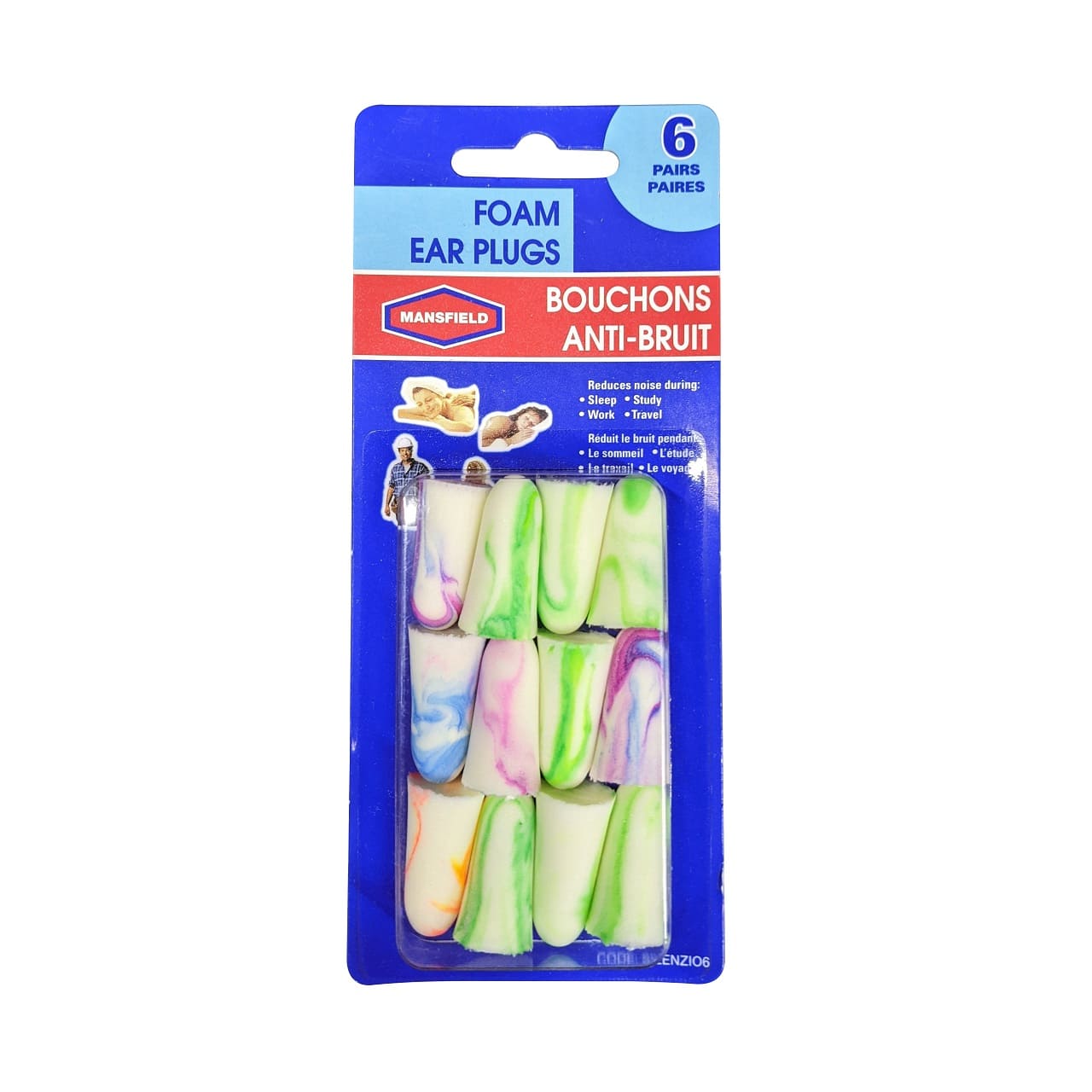 Mansfield Foam Earplug Bright Colours NRR 31 Decibels (6 pairs)