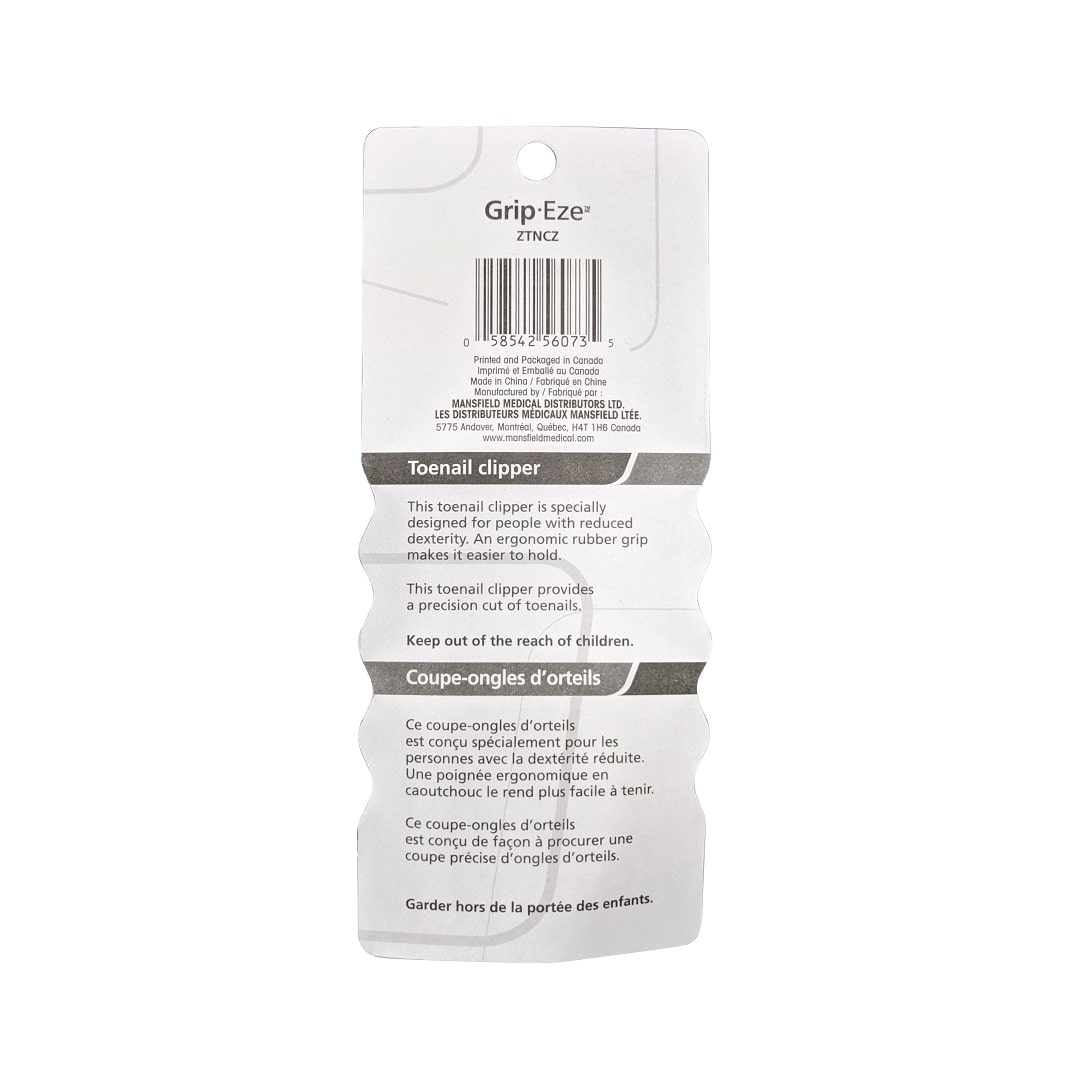 Description: Mansfield Grip Eze Toenail Clipper is specially designed for people with reduced dexterity. An ergonomic rubber grip makes it easier to hold. It provides a precision cut of toenails.