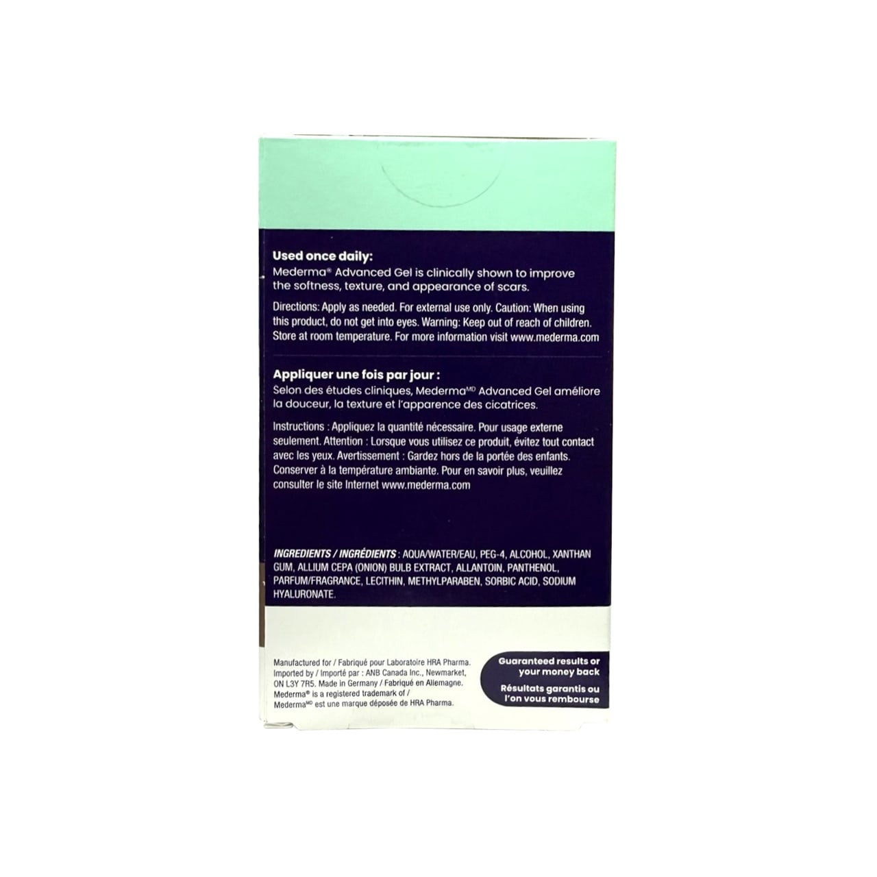 Description: Mederma Advanced Gel Scar Care reduces the appearance of old and new scars, so that you can take charge of your appearance and regain your confidence. It is clinically shown to improve the overall appearance and texture of scars. Mederma Advanced Gel is made from a proprietary botanical extract, resulting in a greaseless, easy-to-use, and effective scar care product.