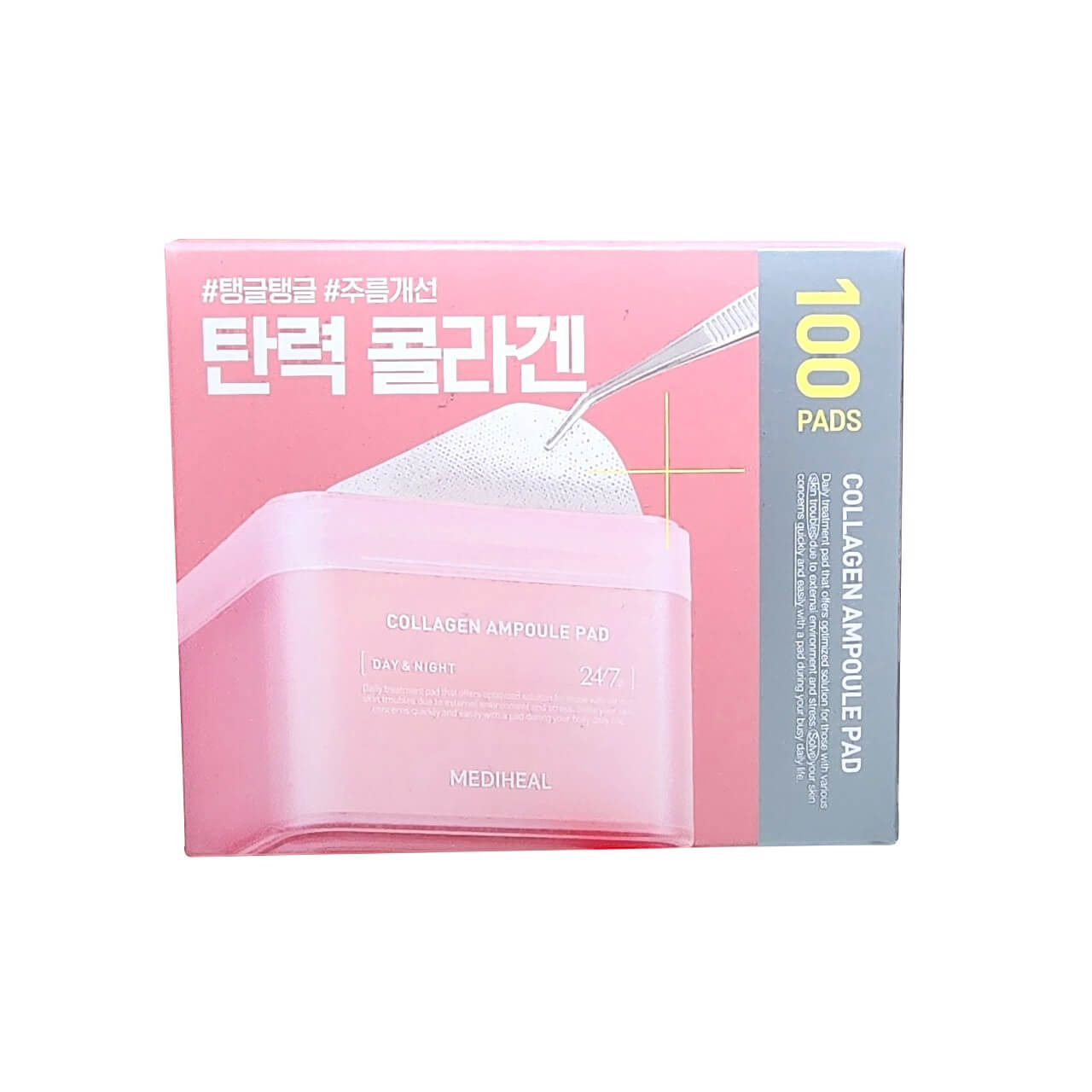 Description: Mediheal Collagen Ampoule Pad reduces the appearance of fine lines and wrinkles. Formulated with collagen, ceramide, and milk protein, the collagen ampoule pad nourishes, tightens, and firms the skin improving skin elasticity.
