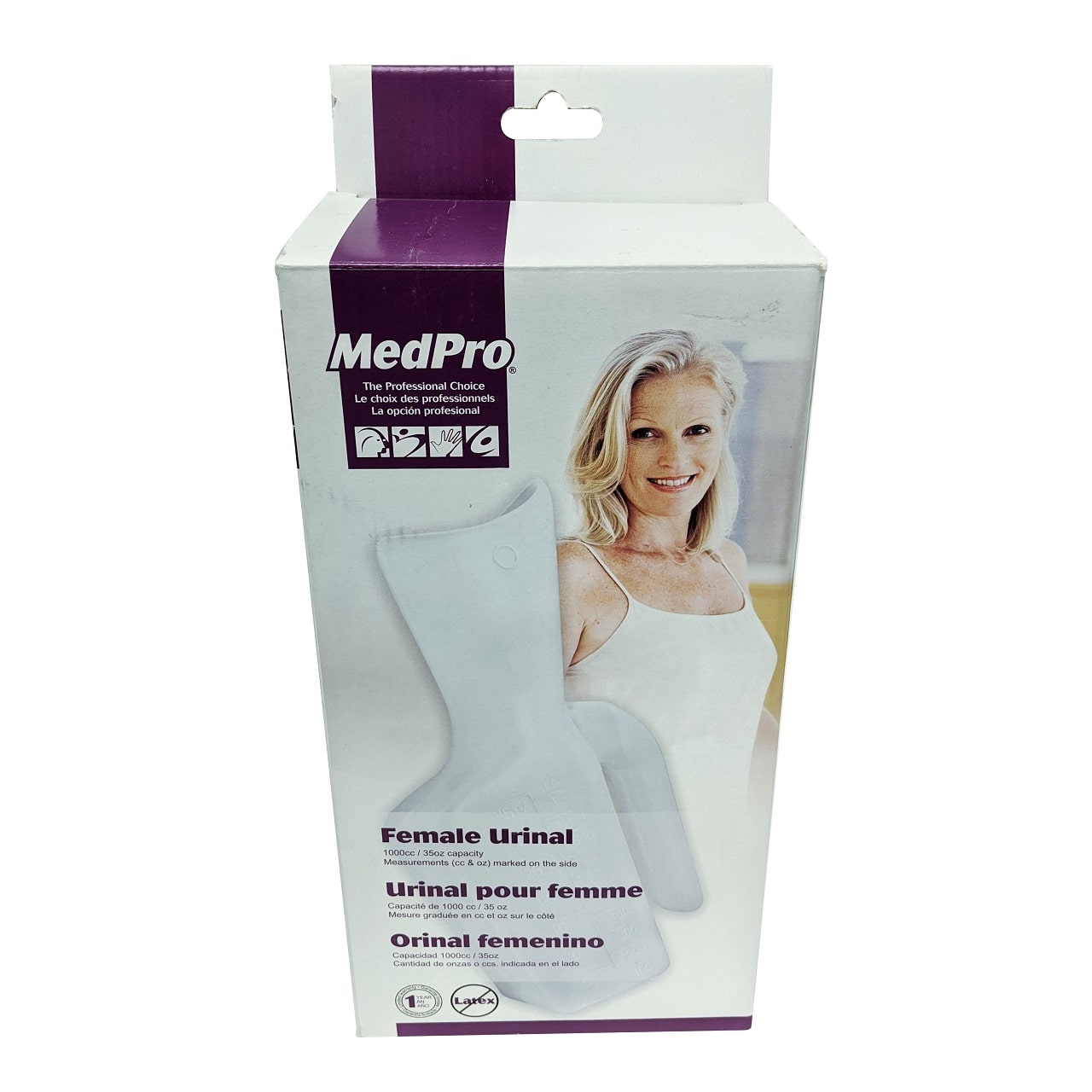 Description: MedPro Female Urinal is ideal for individuals with limited mobility. This urinal has a 1-litre capacity and is made of a durable thick plastic for easy cleaning.