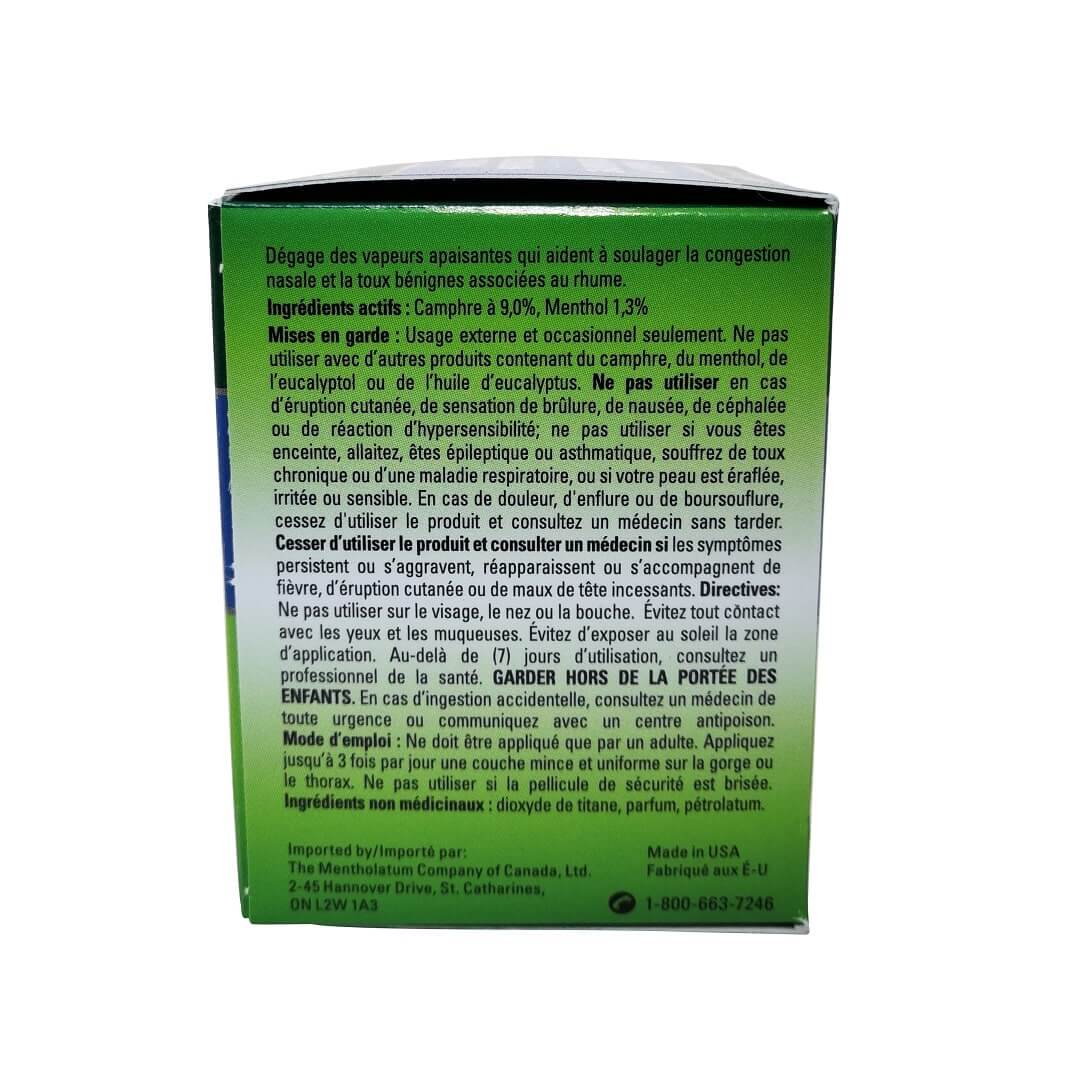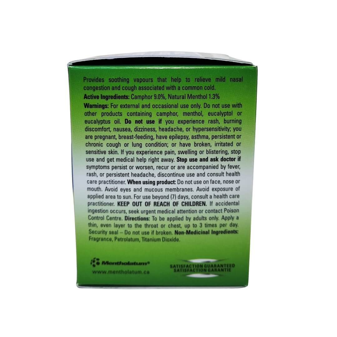 Description: Mentholatum Natural Menthol Rub Ointment provides soothing vapours that help to relieve mild nasal congestion and cough associated with common cold.