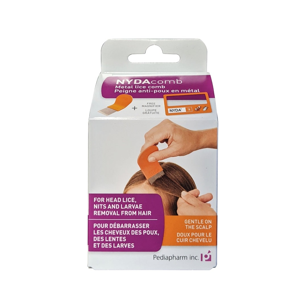 Description: NYDAcomb Metal Lice Comb is designed for head lice, nits, and larvae removal from hair and designed to be easy on the scalp. This comb also comes with a free magnifier.