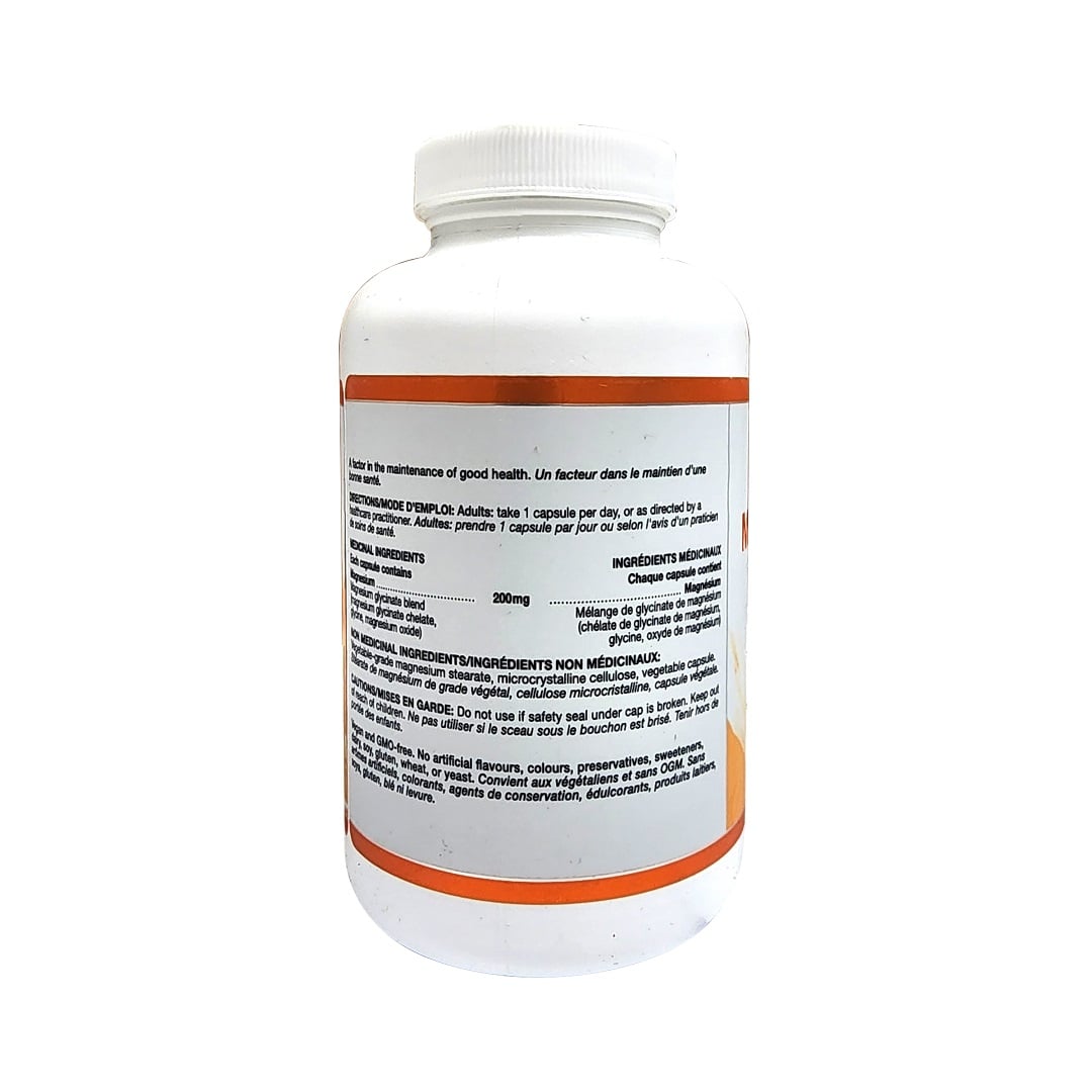Description: Orange Naturals Magnesium Glycinate 200 mg is formulated to help in the maintenance of good health. Magnesium helps our body to effectively use cars, proteins, and fats, and also plays an important role in hundreds of cellular reactions in our body. It can help in the development and maintenance of bones and teeth and maintains proper muscle function.