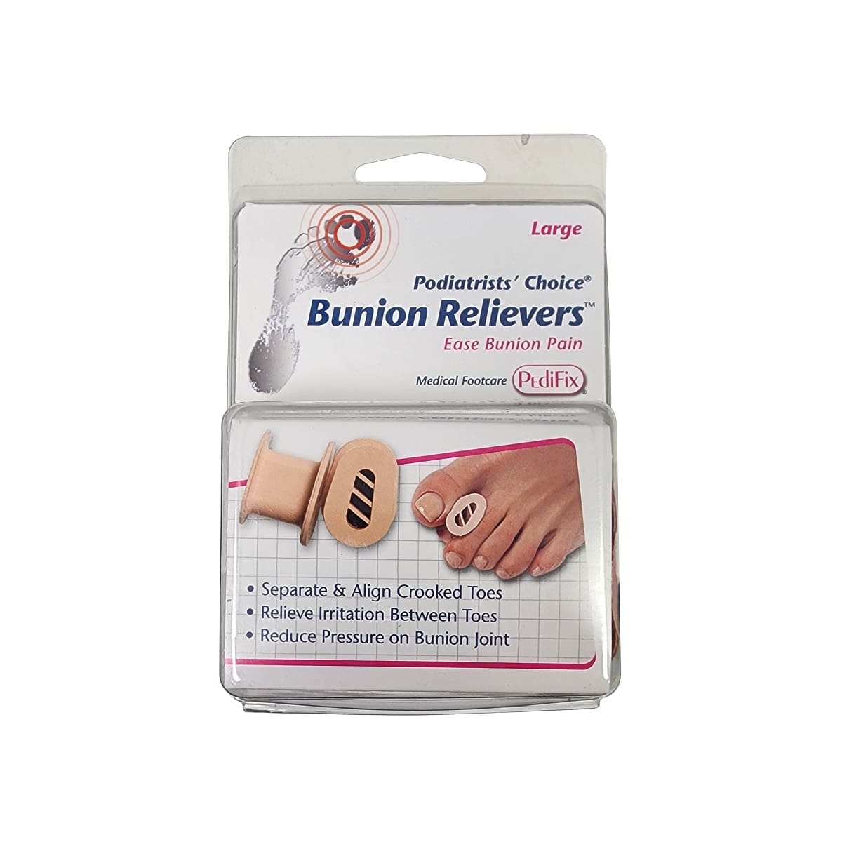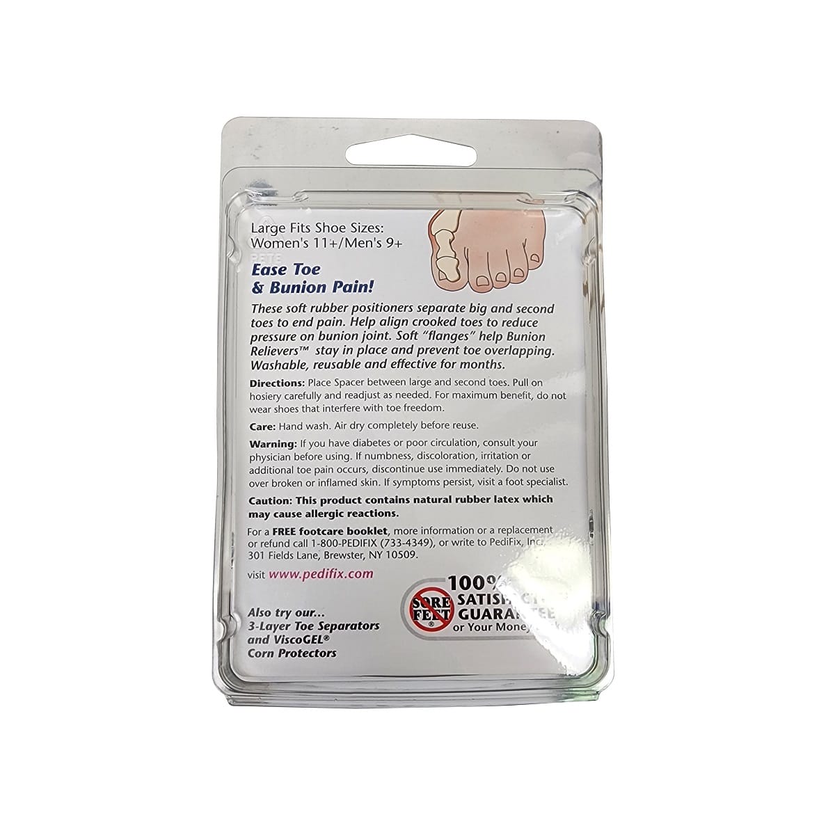 Description: PediFix Bunion Relievers are soft rubber spacers, designed to be placed between your big toe and second toe. The soft rubber positioner helps to align the crooked big toe and decrease pressure on the big toe joint, providing bunion pain relief.