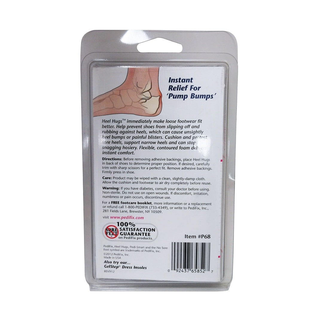 Description: PediFix Pedi-Smart Heel Hugs prevents shoes from sliding and rubbing against the back of your heals. The cushions can helps to prevent heel bumps and painful blisters. Flexible, contoured foam deliver instant comfort.