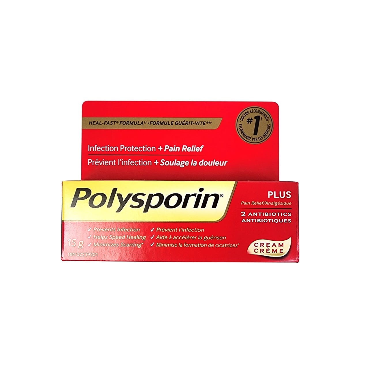 Description: Polysporin Cream Pain Relief and 2 Antibiotics helps to prevent infection of minor wounds such as cuts, scrapes, burns, blisters, nicks, and scratches. In addition to providing infection protection to speed healing, this specific formula contains lidocaine hydrochloride for fast-acting topical pain relief.