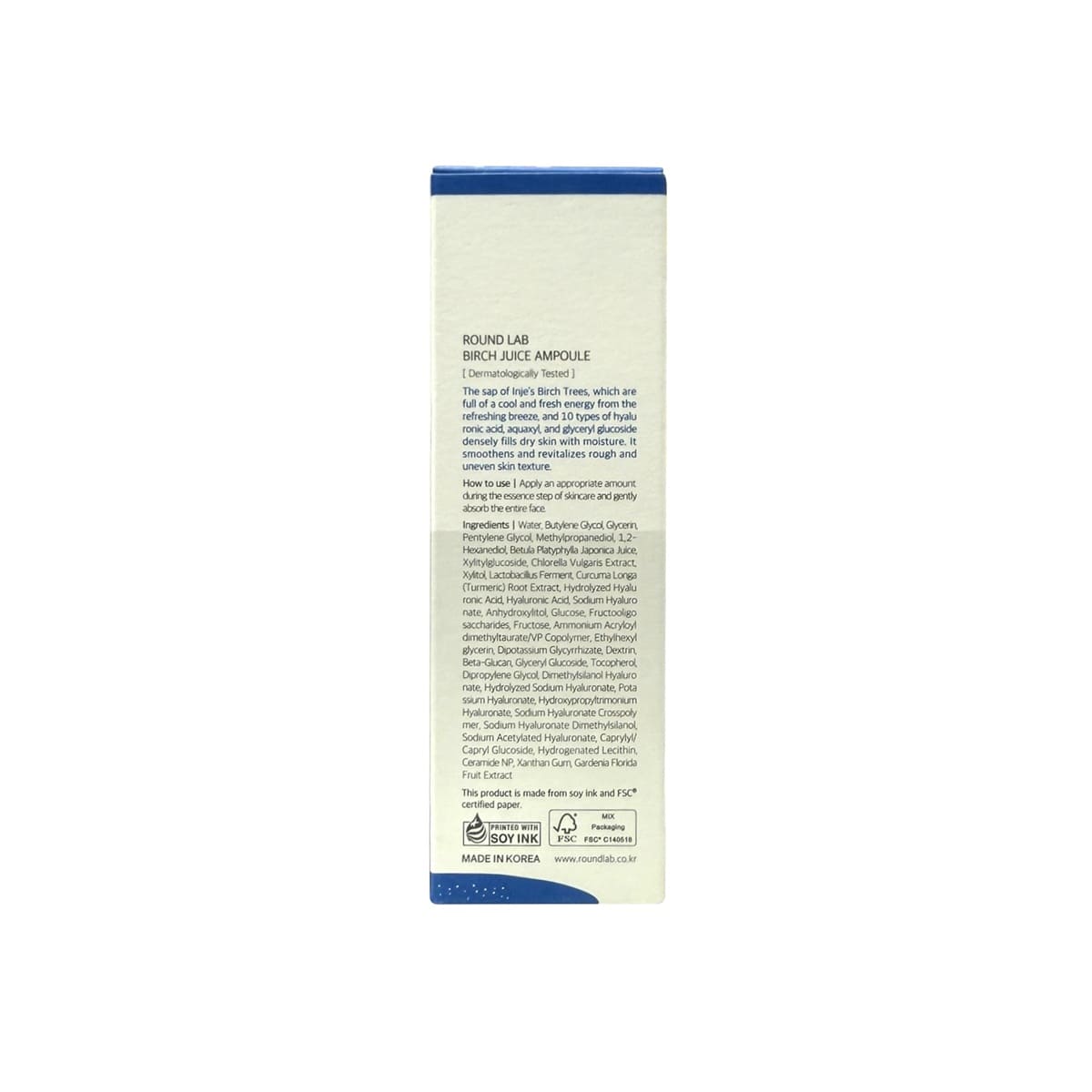 Description: The Round Lab Birch Juice Ampoule is designed to deliver intense hydration to the skin using birch juice as its main ingredient. It features a flexible particle technology that allows dense absorption, offering layers of moisture that lasts for days. This ampoule is effective for revitalizing and deeply moisturizing the skin, thanks to its formulation which includes a mix of ten types of Hyaluronic Acids.
