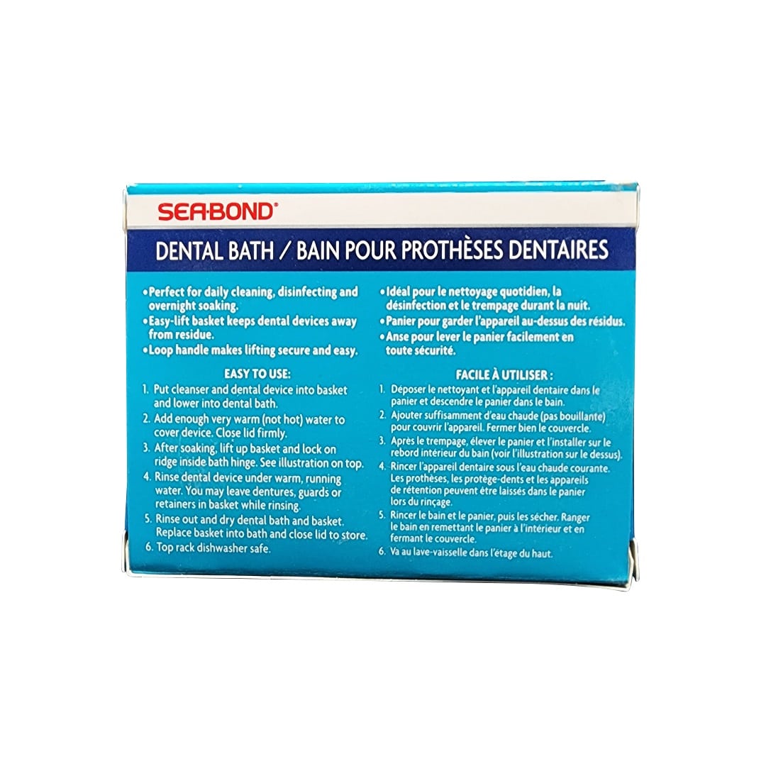 Description: Sea Bond Dental Bath allows easy care for dental devices, including dentures, retainers, and mouth guards. It is great for daily cleaning, disinfecting, and overnight soaking. It features an easy-lift basket to keep dental devices away from resident. The loop handle also makes lifting secure and easy.