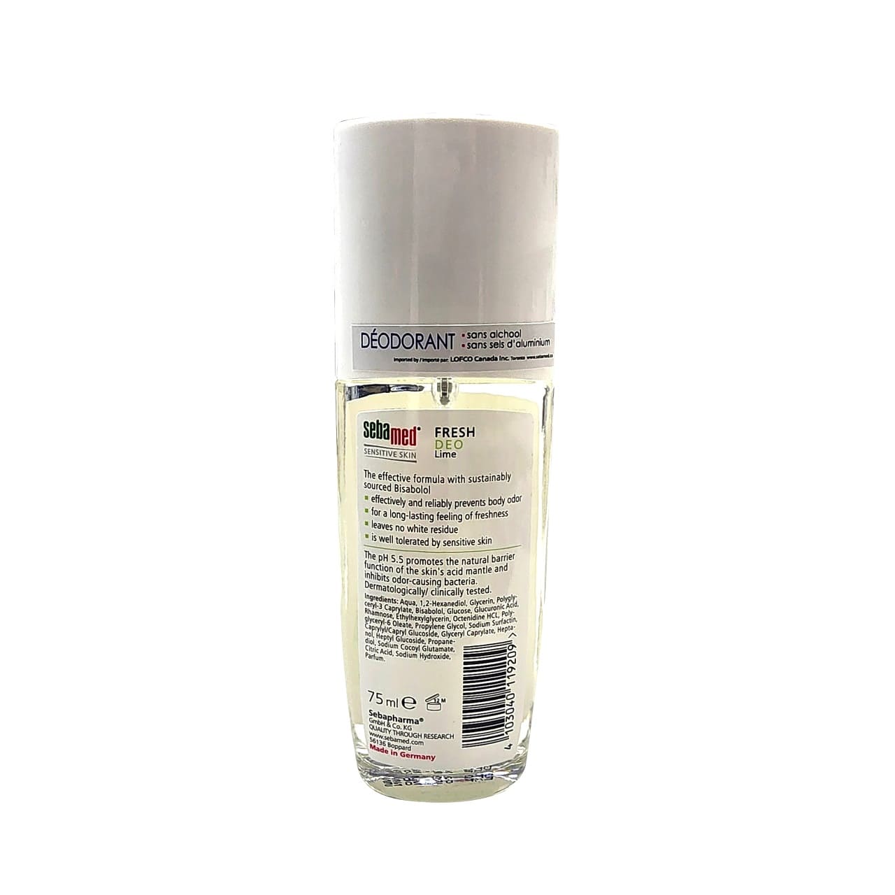 Description: Sebamed 48-Hour Care Spray Deodorant Lime Scent is formulated to provide gentle, reliable, and long-lasting freshness. This care formula counteracts odour-causing bacteria and promotes the natural barrier function of the skin's acid mantle. It features a gentle tri-lipid active ingredient complex to ensure long-lasting freshness and is alcohol free.