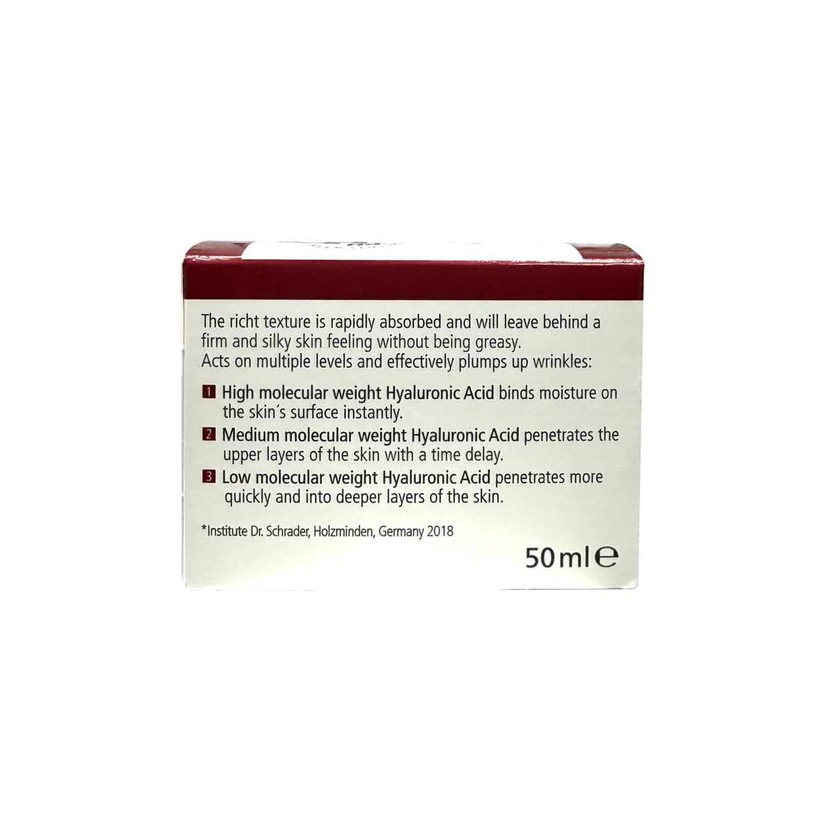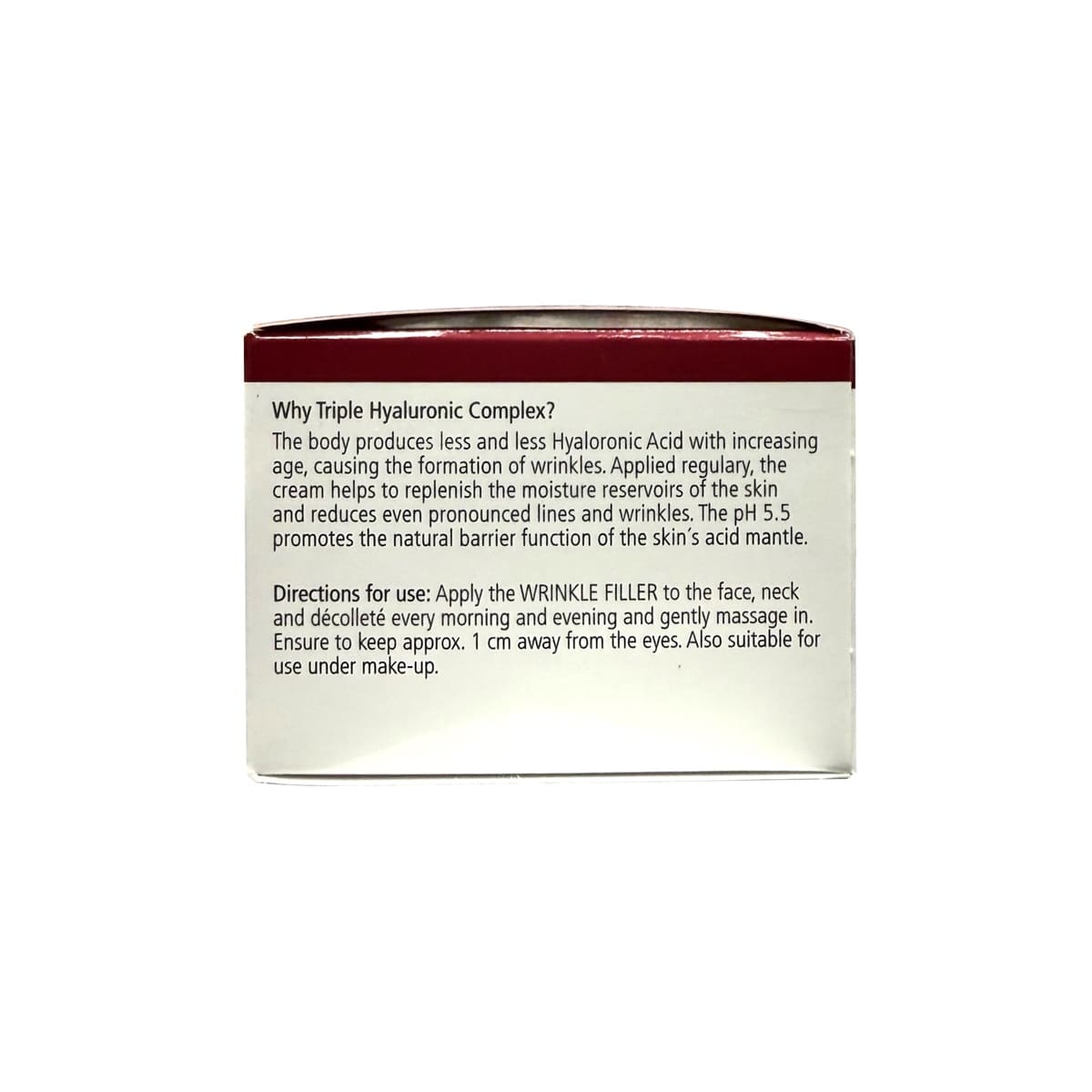 Description: Sebamed has formulated this Winkle Filler cream to help replenish moisture reservoirs in the skin and helps to reduce the signs of wrinkles. As the body ages, it produces less and less hyaluronic acid, causing the formation of wrinkles. Applied regularly, this formula, with a triple hyaluronic complex, which helps to fill those reservoirs. This formula has been scientifically demonstrated to reduce wrinkles in 28 days.