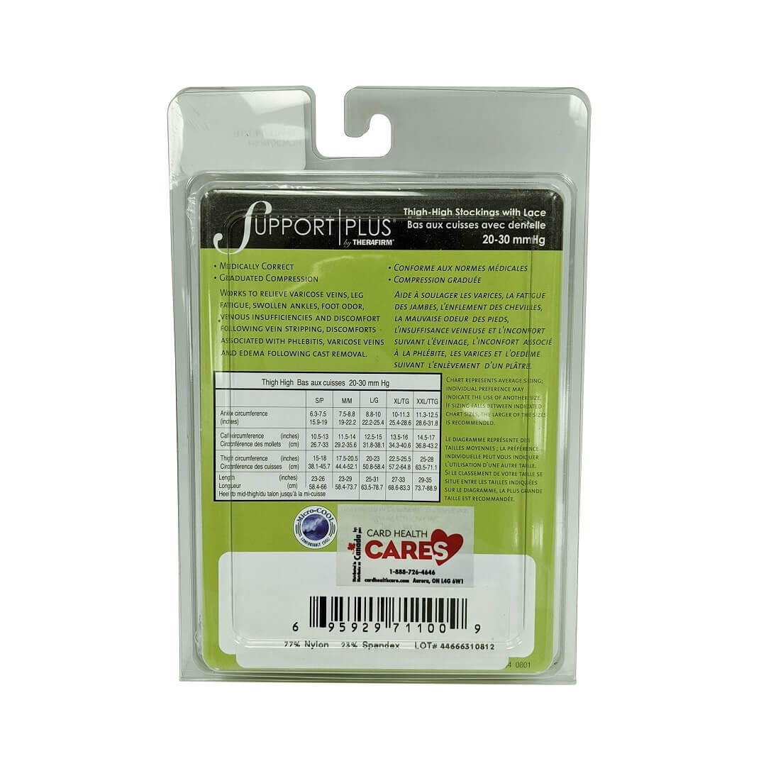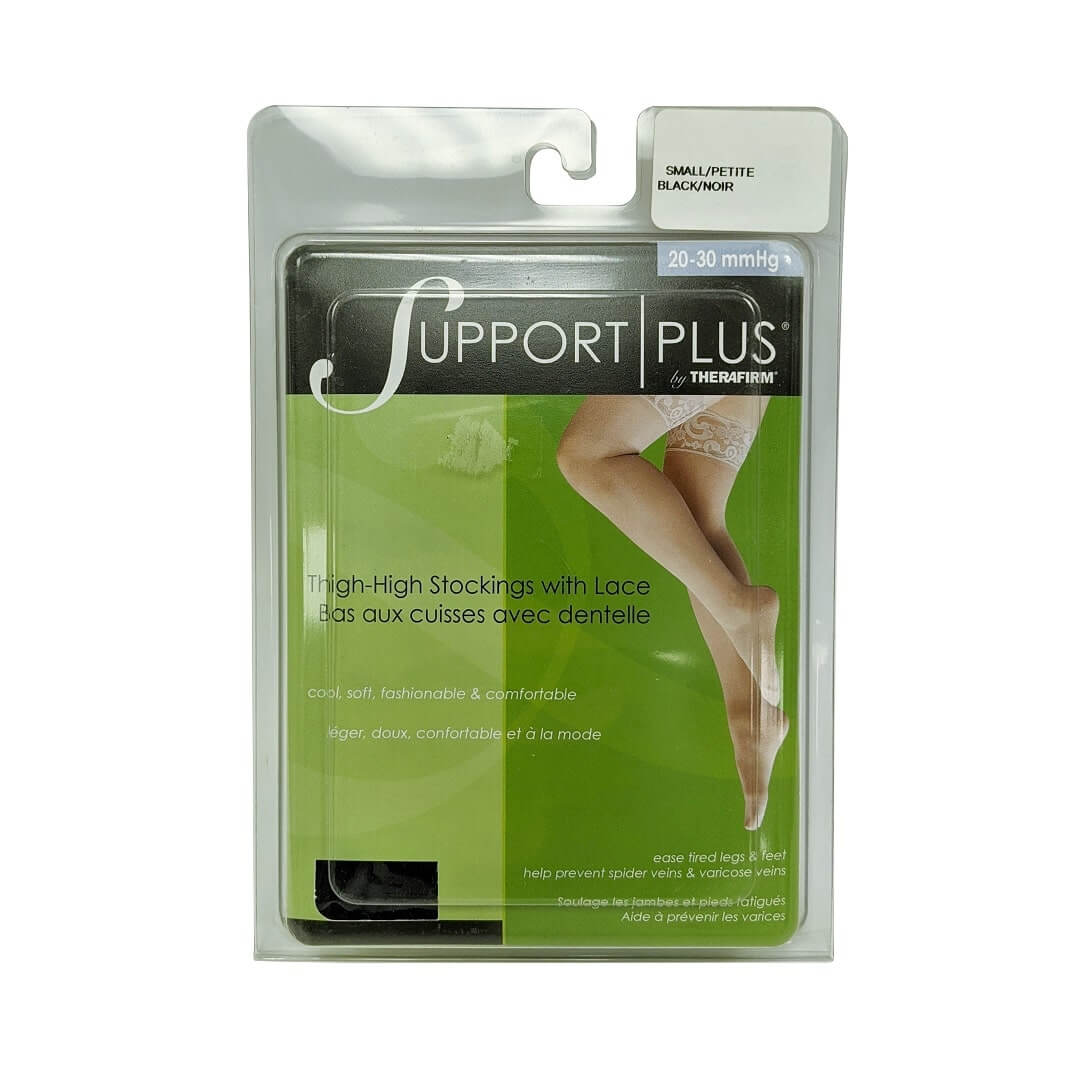 Support Plus by Therafirm 20-30 mmHg - Thigh High Stockings with Lace Top / Black - Small