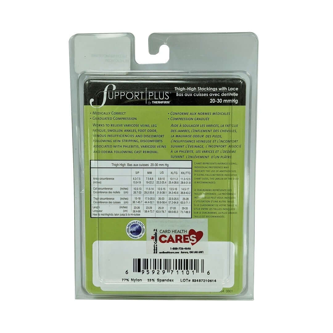 Support Plus by Therafirm 20-30 mmHg - Thigh High Stockings with Lace Top / Black - Medium