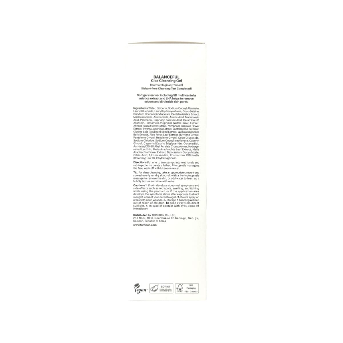 Description: Torriden Balanceful Cica Cleansing Gel is designed to remove impurities without stripping skin, balancing moisture levels to prevent dryness and excessive oiliness. It features Torriden's Soothing 5D Cica Complex, which is a unique blend aimed at calming skin and reinforcing the skin barrier, making it a great solution for sensitive, combination skin.