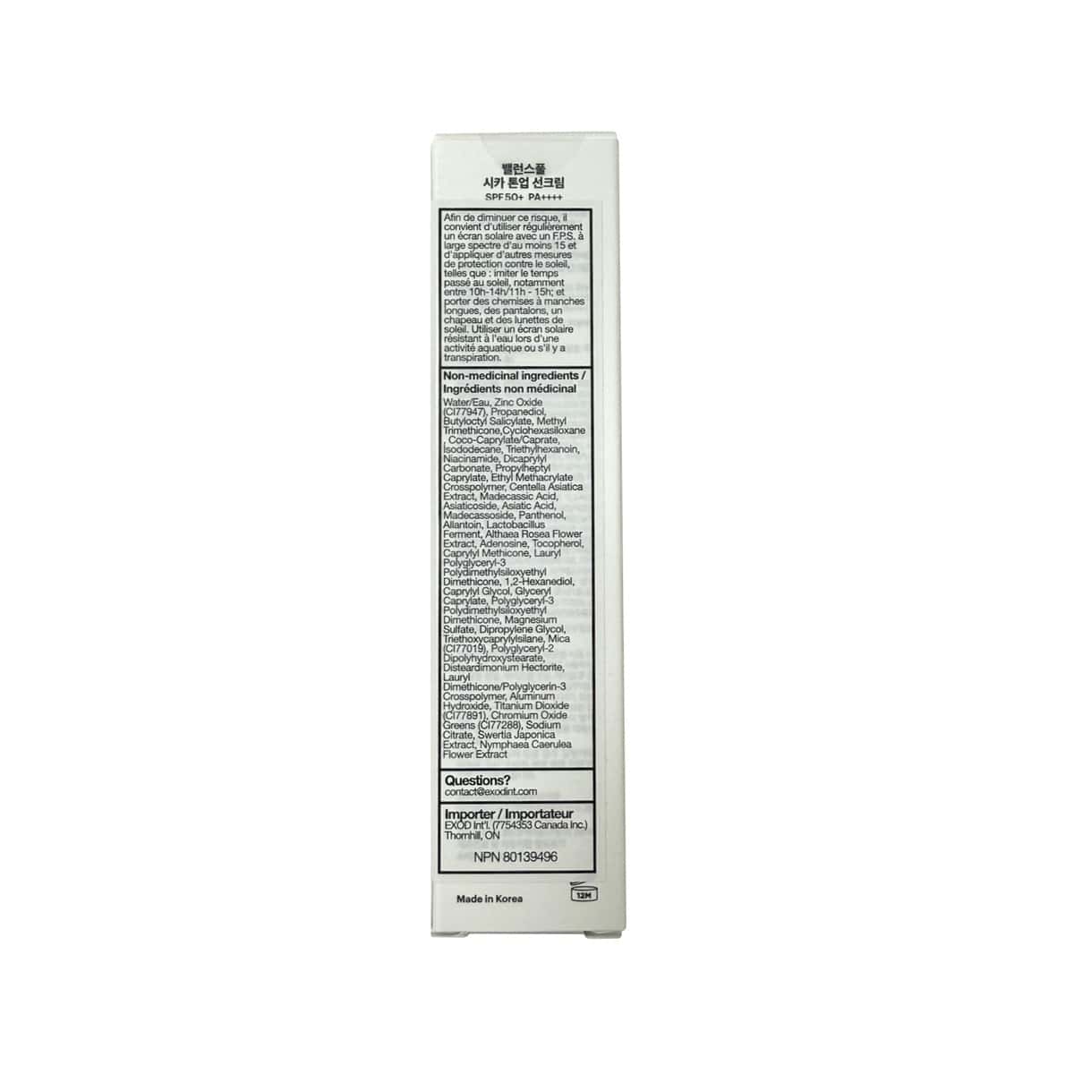 Description: Torriden Balanceful Cica Tone-Up Sun Cream SPF50+ PA++++ is a mineral-based sunscreen that offers high-level sun protection, while delivering a subtle tone-up effect to even out skin tone. It is infused with Torriden's signature 5D Cica Complex to provide soothing care. This sunscreen is free of fragrances and essential oils, making it ideal for sensitive skin.