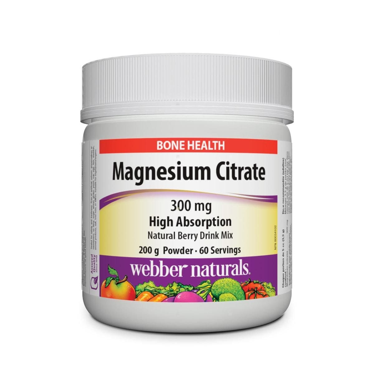 Description: webber naturals Magnesium Citrate High Absorption Powder contains 300 mg of magnesium in a natural berry flavoured drink mix. This powder is designed to be mixed into your smoothie, juice, or water, so that more easily meet your daily requirements.